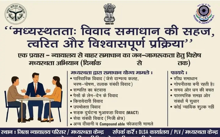 विधिक सेवा प्राधिकरण द्वारा आयोजित कार्यक्रम में सक्रिय जागरुकता से मध्यस्थता द्वारा समस्या समाधान का उत्तम पहल।
