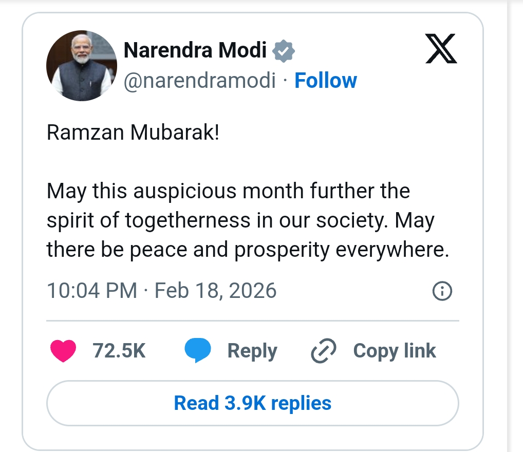 The holy month of Ramzan, the most sacred month for Muslims, began today. With the crescent moon being sighted in many parts of the country on Wednesday evening, religious leaders announced that Ramzan, the ninth month according to the Islamic calendar, has begun. Prime Minister Narendra Modi extended his greetings to the people of the country on the occasion of the beginning of the month of Ramzan. He shared his message on the social media platform X. "Ramadan Mubarak.. This holy month should further strengthen the spirit of unity in society." I wish peace and prosperity everywhere,” the Prime Minister said.