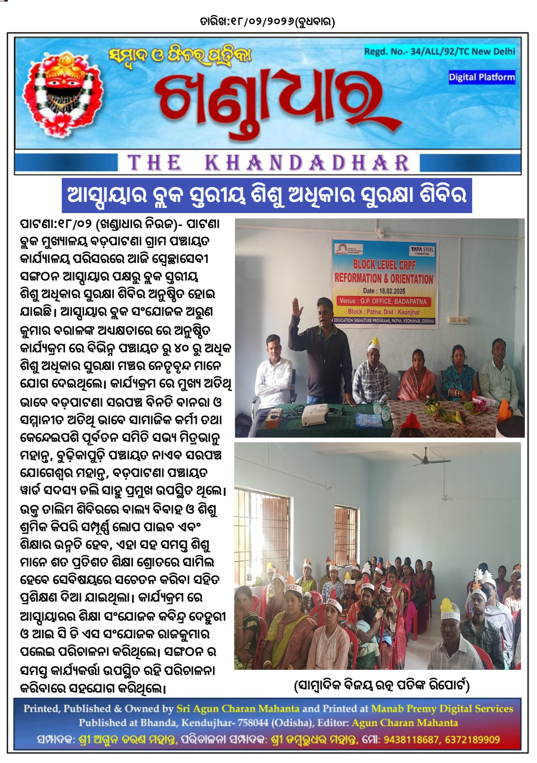 ଖଣ୍ଡାଧାର ନିଉଜ- ବିଜୟ ରତ୍ନ ପତିଙ୍କ ରିପୋର୍ଟ।