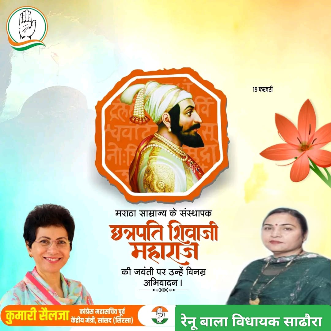 कपुरी :- हल्का सधौरा विधायक मैडम रेणु बाला नी नें छत्र पति शिवा जी की जयंती पर नमन किया,"स्वतंत्रता एक वरदान है, जिसे पाने का अधिकारी हर किसी को है।" महान योद्धा, कुशल शासक, अद्भुत साहस और शौर्य के प्रतीक धर्म के प्रति समर्पित #छत्रपति_शिवाजी_महाराज जी की जयंती पर उन्हें सादर नमन" ।