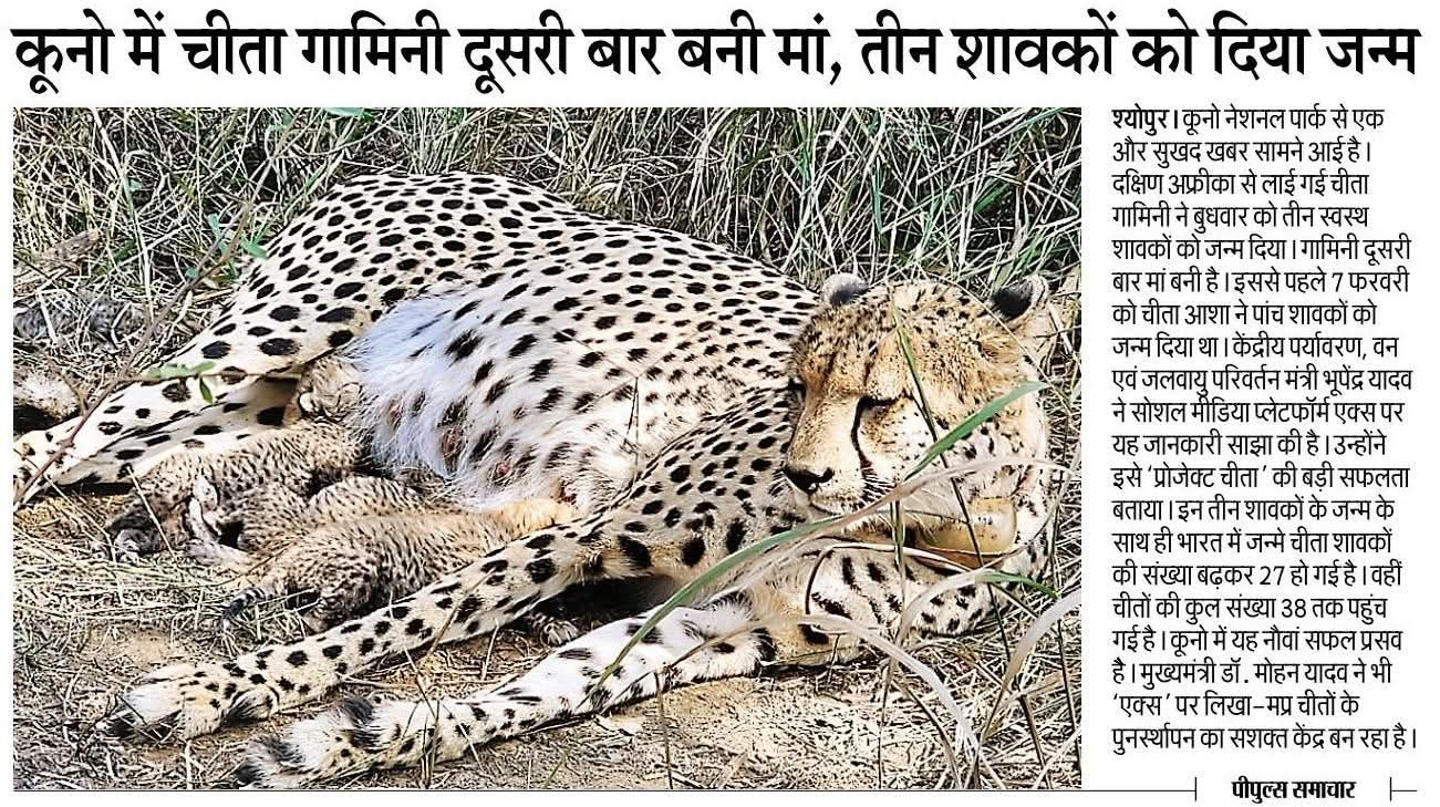 कूनो में चीता गामिनी दूसरी बार बनी मां 3 शावकों को दिया जन्म