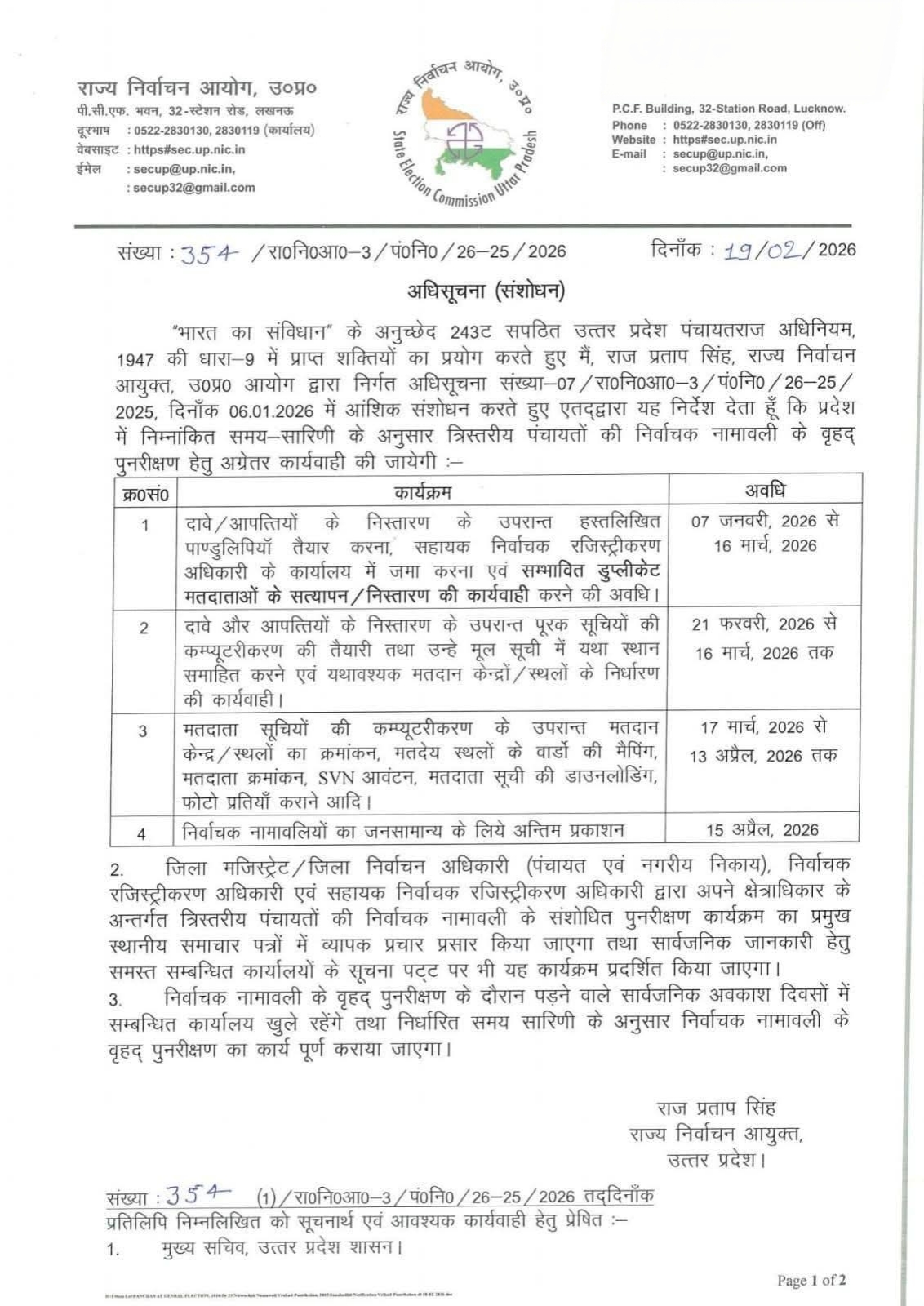 यूपी में मतदाता सूची पुनरीक्षण का संशोधित कार्यक्रम जारी, 15 अप्रैल को अंतिम प्रकाशन