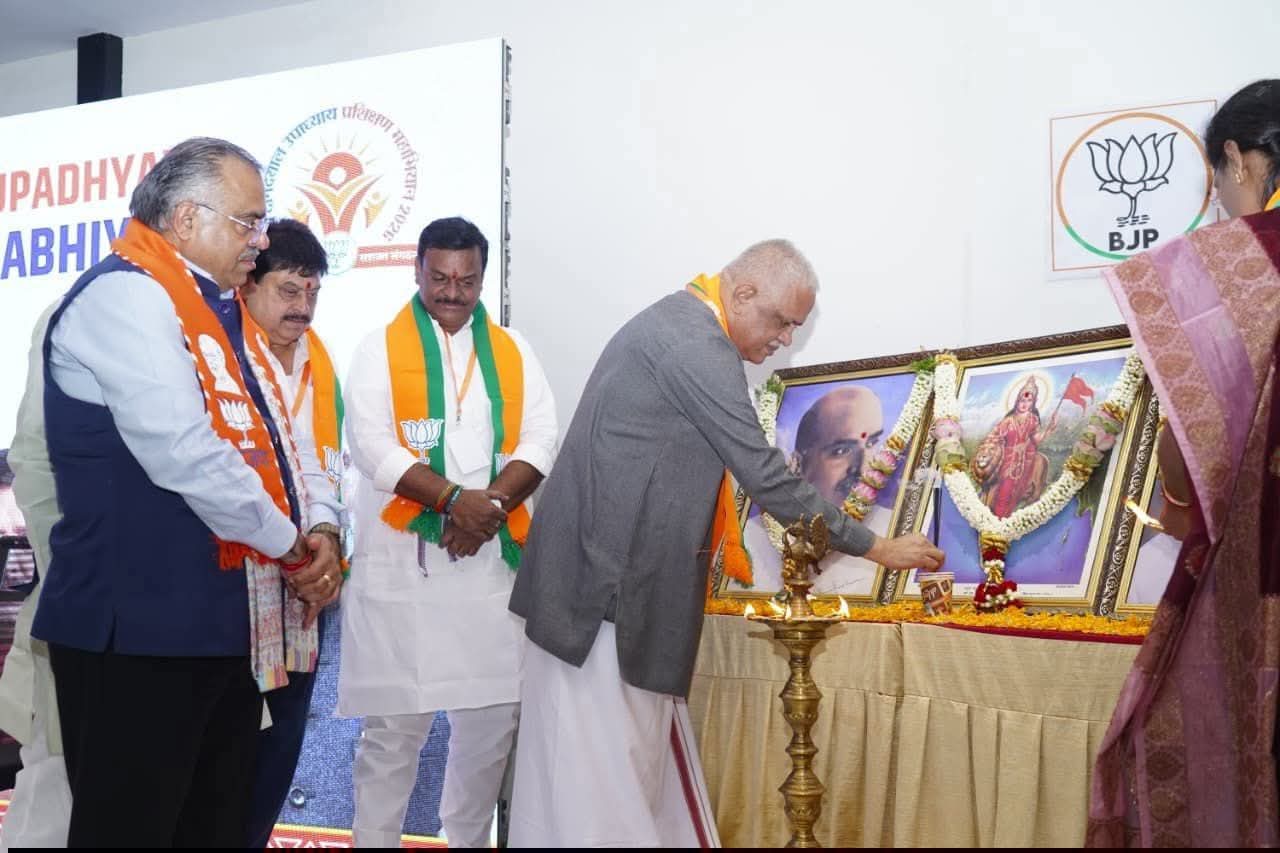 BJP పార్టీ జాతీయ సంస్థాగత ప్రధాన కార్యదర్శి శ్రీ బి.ఎల్ సంతోష్ గారు, BJP పార్టీ జాతీయ సంస్థాగత సహ ప్రధాన కార్యదర్శి శ్రీ శివ ప్రకాశ్ గారు, BJP పార్టీ జాతీయ ప్రధాన కార్యదర్శి శ్రీ తరుణ్ చుగ్ గారు మరియు తెలంగాణ, ఆంధ్రప్రదేశ్, కర్ణాటక రాష్ట్రాల సీనియర్ BJP నాయకుల సమక్షంలో BJP పార్టీ తెలంగాణ రాష్ట్ర అధ్యక్షులు శ్రీ ఎన్ రాంచందర్ రావు గారు మరియు BJP పార్టీ ఆంధ్రప్రదేశ్ రాష్ట్ర అధ్యక్షులు శ్రీ పి.వి.ఎన్. మాధవ్ గారు పార్టీ జెండాను ఆవిష్కరించి, 'పండిట్ దీన్ దయాల్ ఉపాధ్యాయ మహా ప్రశిక్షణ అభియాన్' కార్యక్రమం అత్యంత ఘనంగా ప్రారంభించారు.