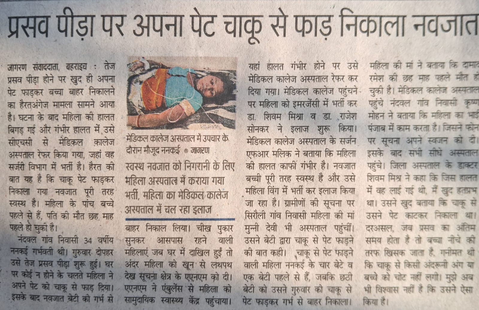 प्रसव पीड़ा में महिला ने खुद ही पेट चाकू से फाड़ा, नवजात सुरक्षित