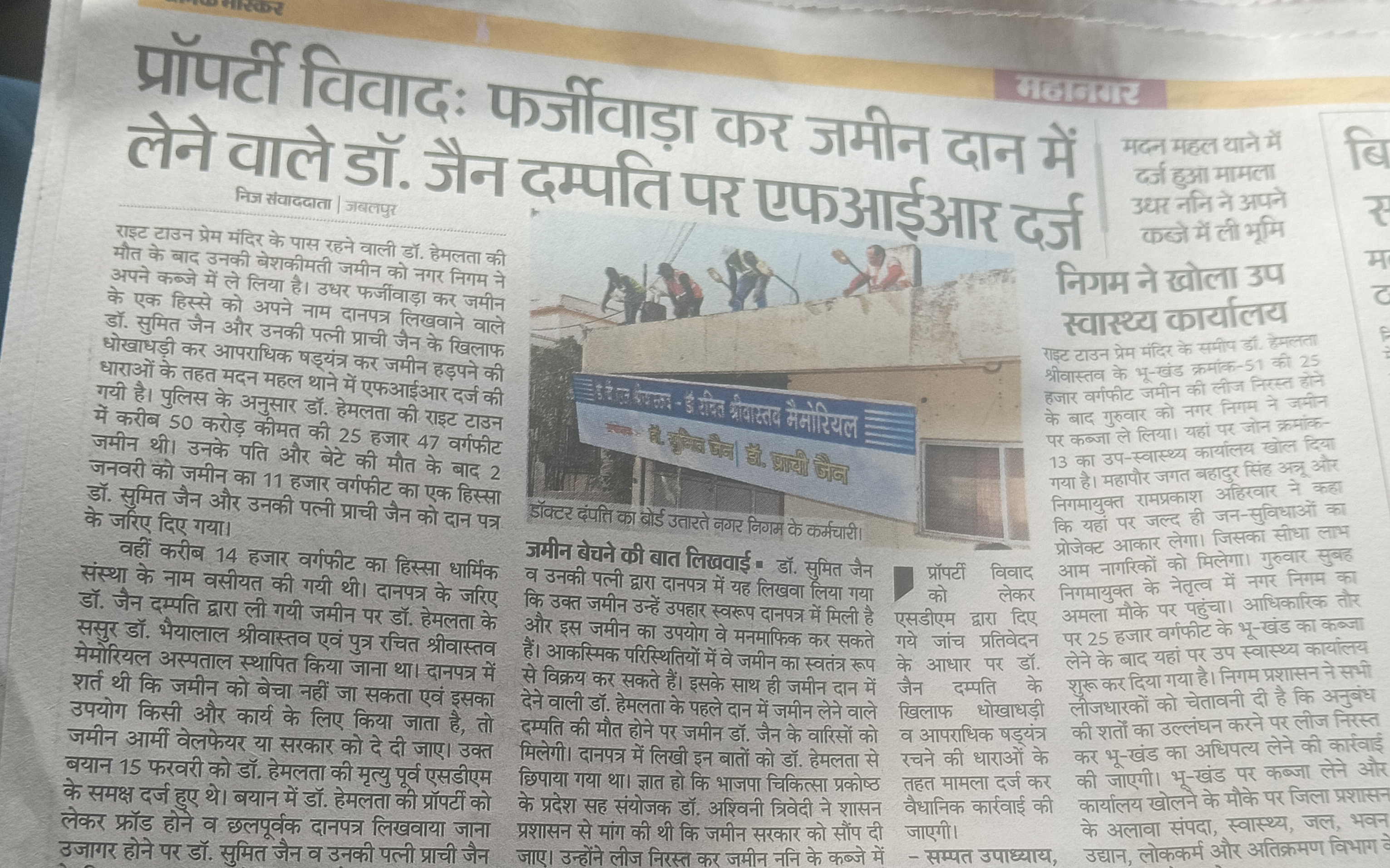 प्रॉपर्टी विवाद में फर्जीबाड़ा कर जमीन दान में लेने वाले डॉक्टर जैन दंपति पर एफआईआर दर्ज है