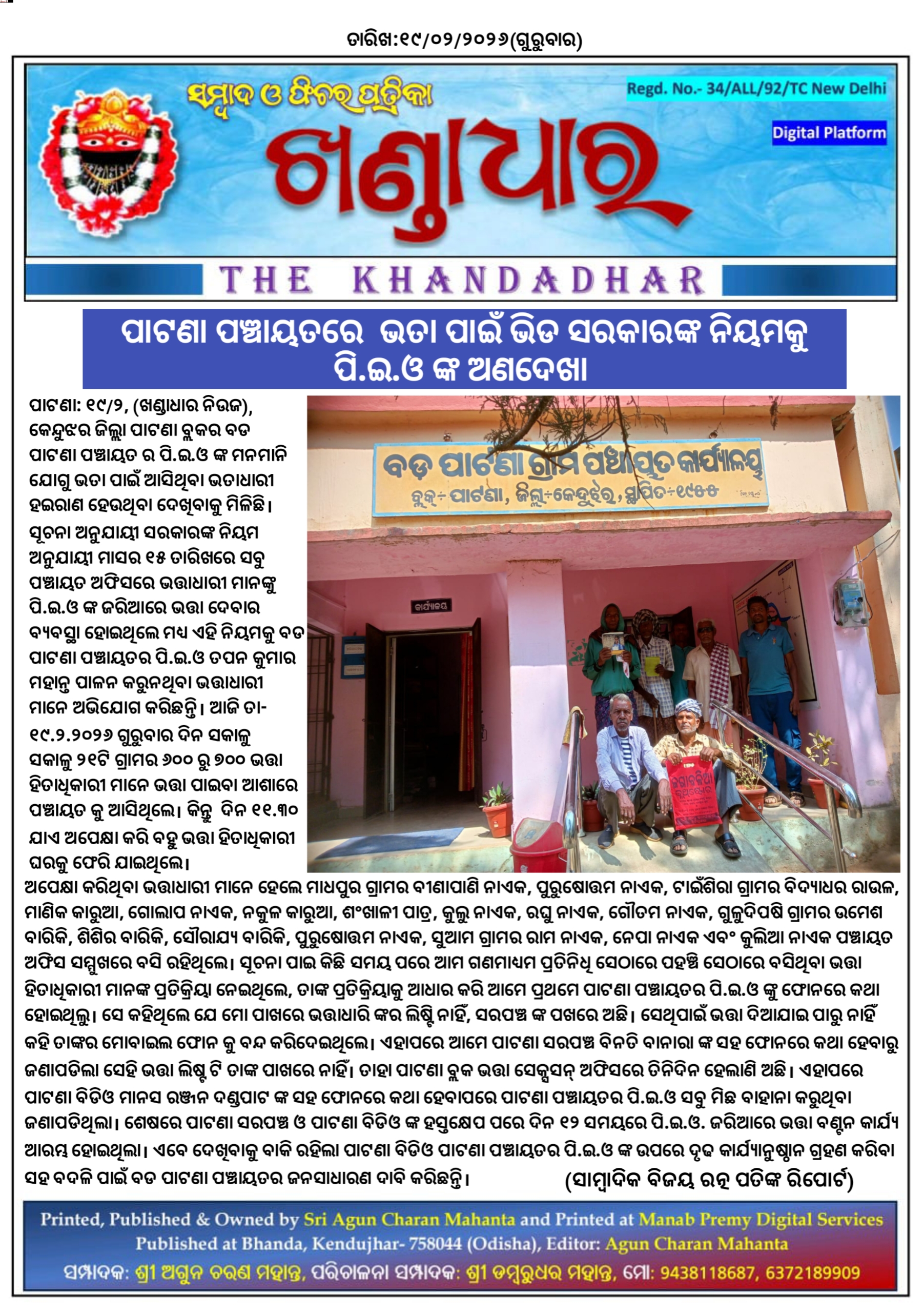 ଖଣ୍ଡାଧାର ନିଉଜ- ସାମ୍ବାଦିକ ବିଜୟ ରତ୍ନ ପତିଙ୍କ ରିପୋର୍ଟ।