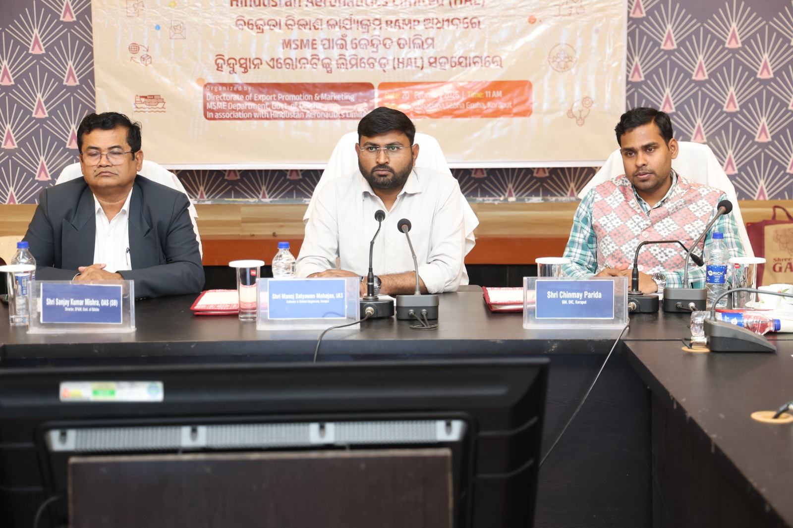 ରାଇଜିଂ ଏଣ୍ଡ ଏକ୍ସେଲେରେଟିଂ ଏମଏସଏମଇ ପର୍ଫର୍ମାନ୍ସ (RAMP) ଉଦ୍ୟମ ଅଧୀନରେ ଏବଂ Hindustan Aeronautics Limited ସହ ୱେଣ୍ଡର ଡିଭେଲପମେଣ୍ଟ ପ୍ରୋଗ୍ରାମ (VDP) ଅନୁସାରେ ଏମଏସଏମଇମାନଙ୍କ ପାଇଁ ଏକ କେନ୍ଦ୍ରିତ ପ୍ରଶିକ୍ଷଣ କାର୍ୟକ୍ରମ ୨୦ ଫେବୃଆରୀ ୨୦୨୬ ତାରିଖରେ କୋରାପୁଟ ସ୍ଥିତ ସଦ୍ଭାବନା ସଭାଗୃହରେ ସଫଳତାର ସହ ଆୟୋଜିତ ହୋଇଥିଲା। ଏହି କାର୍ୟକ୍ରମଟି Directorate of Export Promotion & Marketing, Odisha (DEPM), ଭୁବନେଶ୍ୱର ଦ୍ୱାରା ଜିଲ୍ଲା ଶିଳ୍ପ କେନ୍ଦ୍ର, ଜୟପୁର-କୋରାପୁଟ ସହ ସମନ୍ୱୟରେ ଆୟୋଜନ କରାଯାଇଥିଲା।