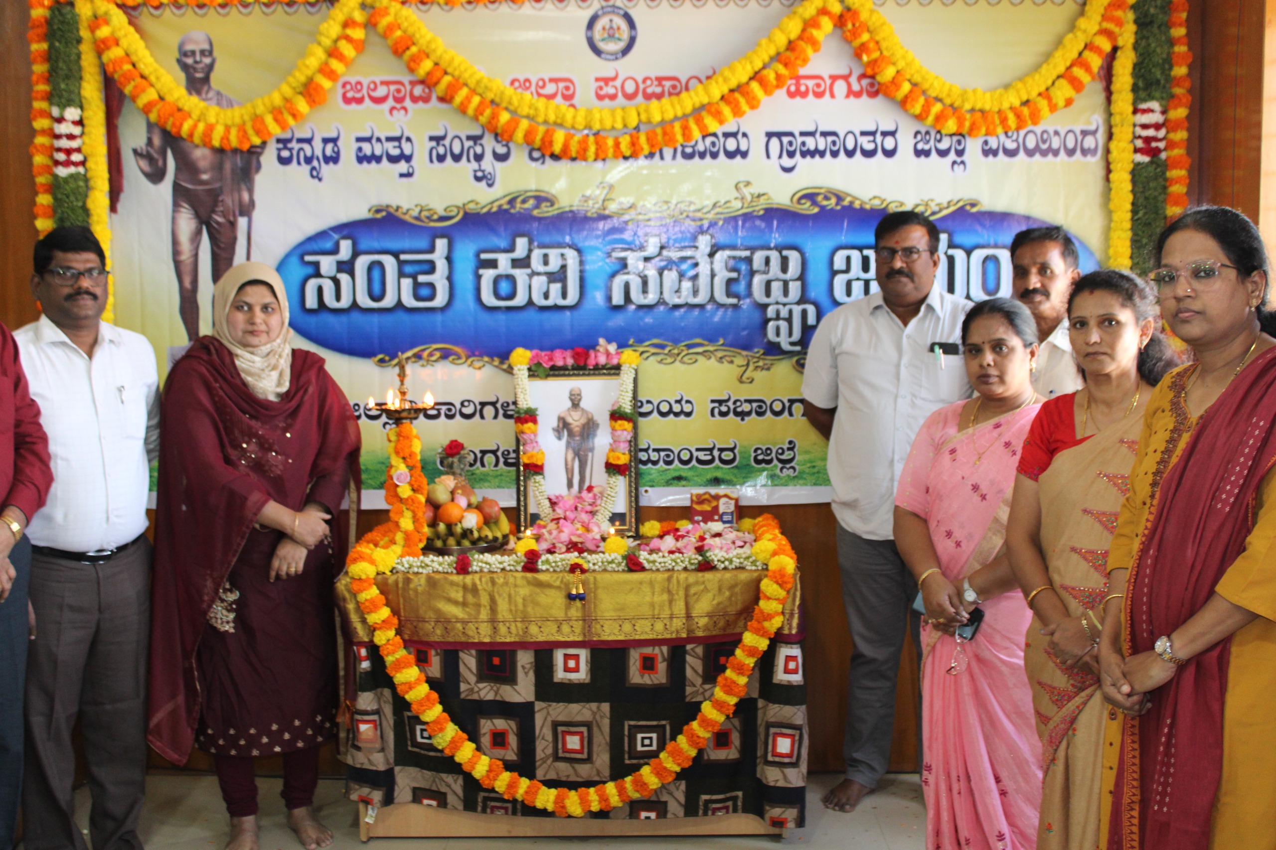ಜಿಲ್ಲಾಡಳಿತ ಭವನದ ಜಿಲ್ಲಾಧಿಕಾರಿಗಳ ಕಚೇರಿ ಸಭಾಂಗಣದಲ್ಲಿ ಜಿಲ್ಲಾಡಳಿತ, ಜಿಲ್ಲಾ ಪಂಚಾಯತ್ ಕನ್ನಡ ಮತ್ತು ಸಂಸ್ಕೃತಿ ಇಲಾಖೆ ವತಿಯಿಂದ ಹಮ್ಮಿಕೊಂಡಿದ್ದ ಸಂತ ಕವಿ ಸರ್ವಜ್ಞರ ಜಯಂತಿಯಲ್ಲಿ ಸರ್ವಜ್ಞರ ಭಾವಚಿತ್ರಕ್ಕೆ ಪುಷ್ಪಾರ್ಚನೆ ಮಾಡುವ ಮೂಲಕ ಗೌರವ ನಮನ ಸಲ್ಲಿಸಿ ಮಾತನಾಡಿದರು.