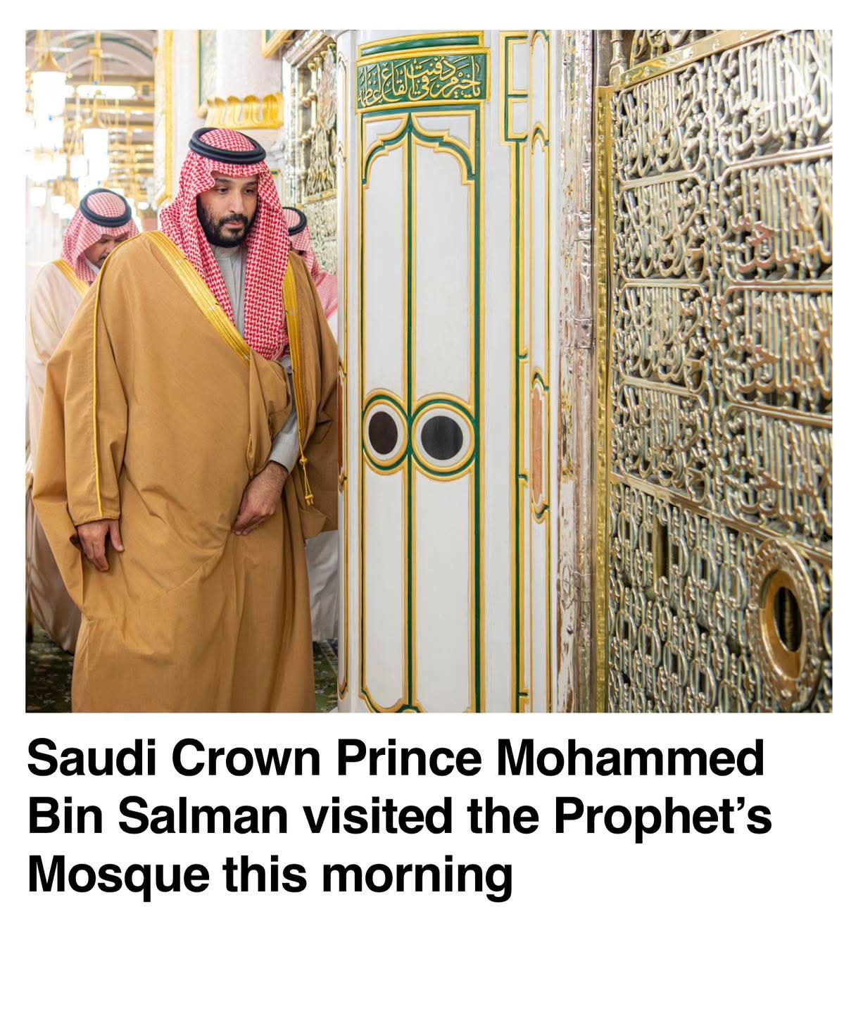 Saudi Crown Prince Mohammed Bin Salman visited the Prophet’s Mosque صلى الله عليه وسلم this morning.🤲🕌