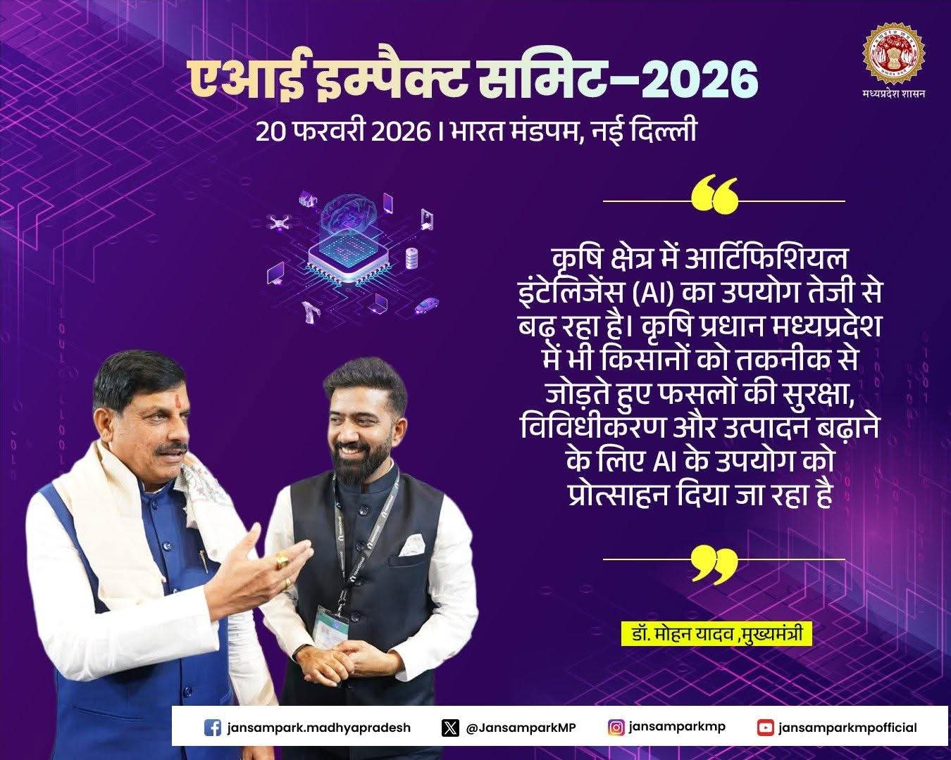 कृषि क्षेत्र में आर्टिफिशियल इंटेलिजेंस (AI) का उपयोग तेजी से बढ़ रहा है। कृषि प्रधान मध्यप्रदेश में भी किसानों को तकनीक से जोड़ते हुए फसलों की सुरक्षा, विविधीकरण और उत्पादन बढ़ाने के लिए AI के उपयोग को प्रोत्साहन दिया जा रहा है।