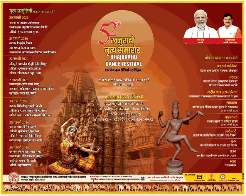 52वां खजुराहो नृत्य समारोह (शास्त्रीय नृत्य शैलियों पर केंद्रित)