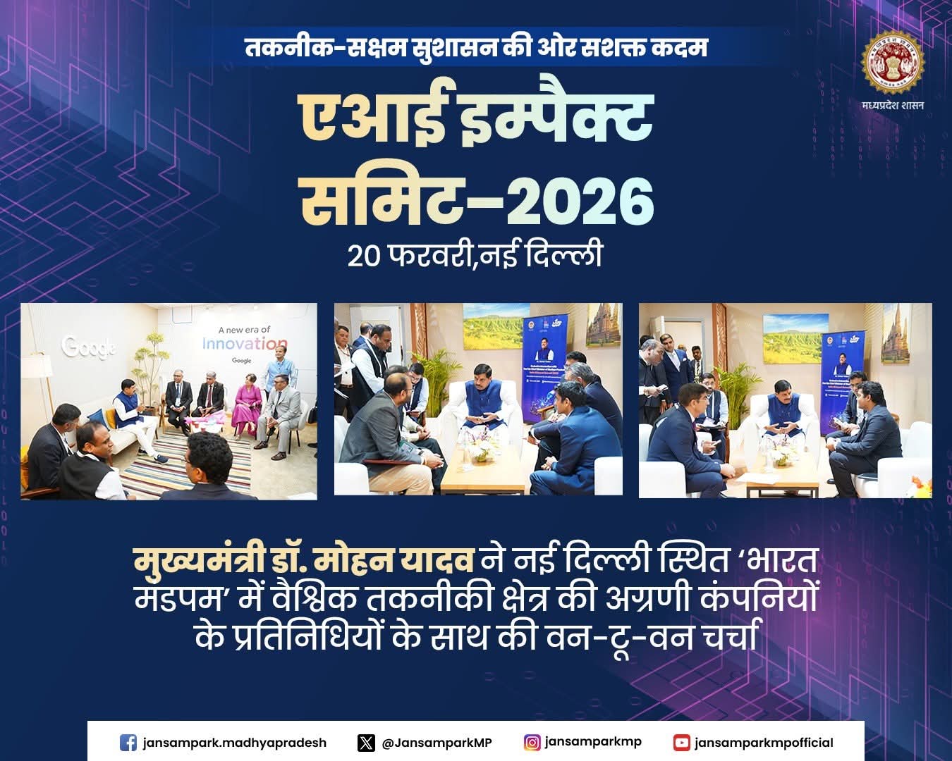 Dr Mohan Yadav CM Madhya Pradesh Department of Information Technology, Madhya Pradesh Industry Policy & Investment Promotion Department #CMMadhyaPradesh #IndiaAIImpactSummit2026