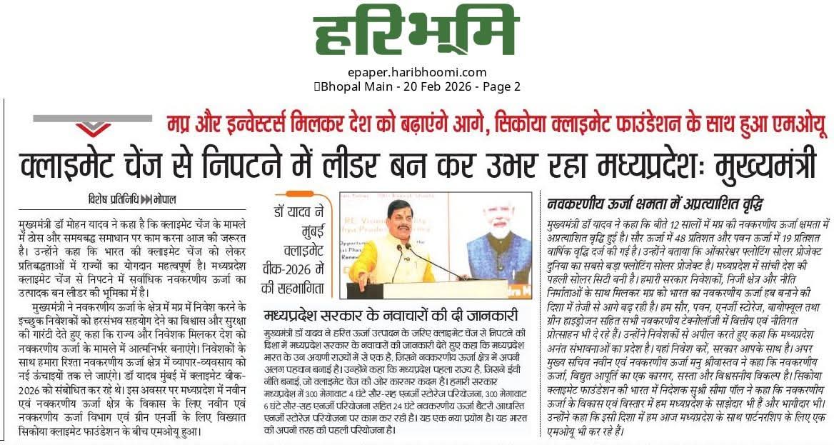 क्लाइमेट चेंज से निपटने में लीडर बन कर उभर रहा मध्यप्रदेश : मुख्यमंत्री डॉ. मोहन यादव