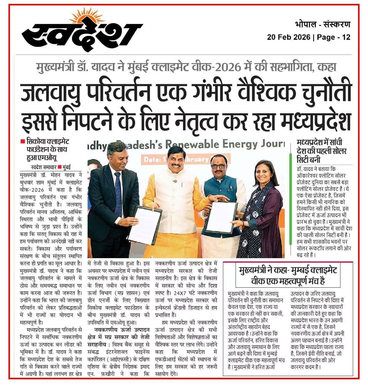 क्लाइमेट चेंज से निपटने में लीडर बन कर उभर रहा मध्यप्रदेश: मुख्यमंत्री डॉ मोहन यादव