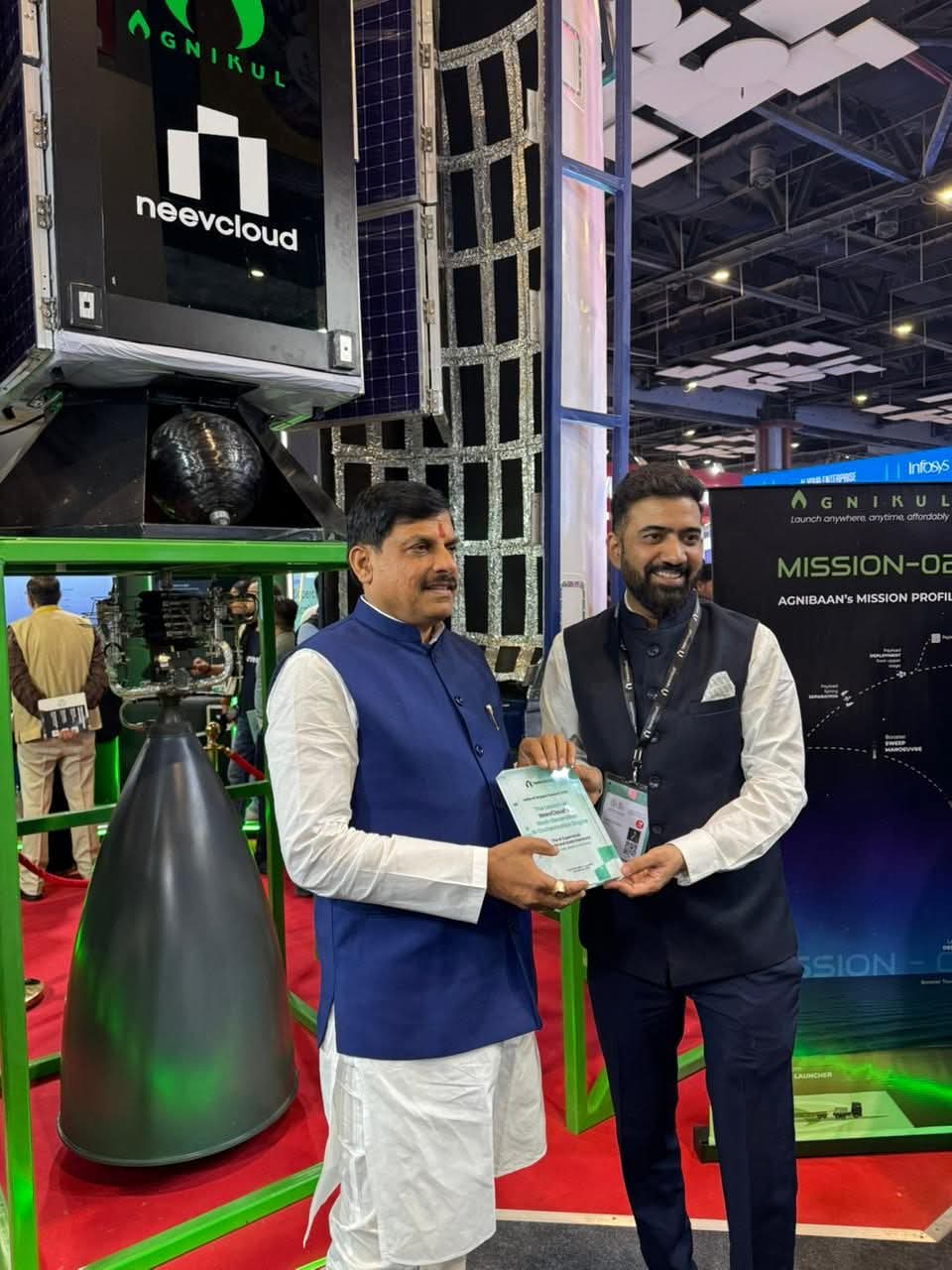 मुख्यमंत्री डॉ. मोहन यादव ने इंडिया एआई इम्पैक्ट समिट-2026, नई दिल्ली में नीवक्लाउड के स्टॉल का अवलोकन कर सीईओ श्री नरेन सेन से किया संवाद