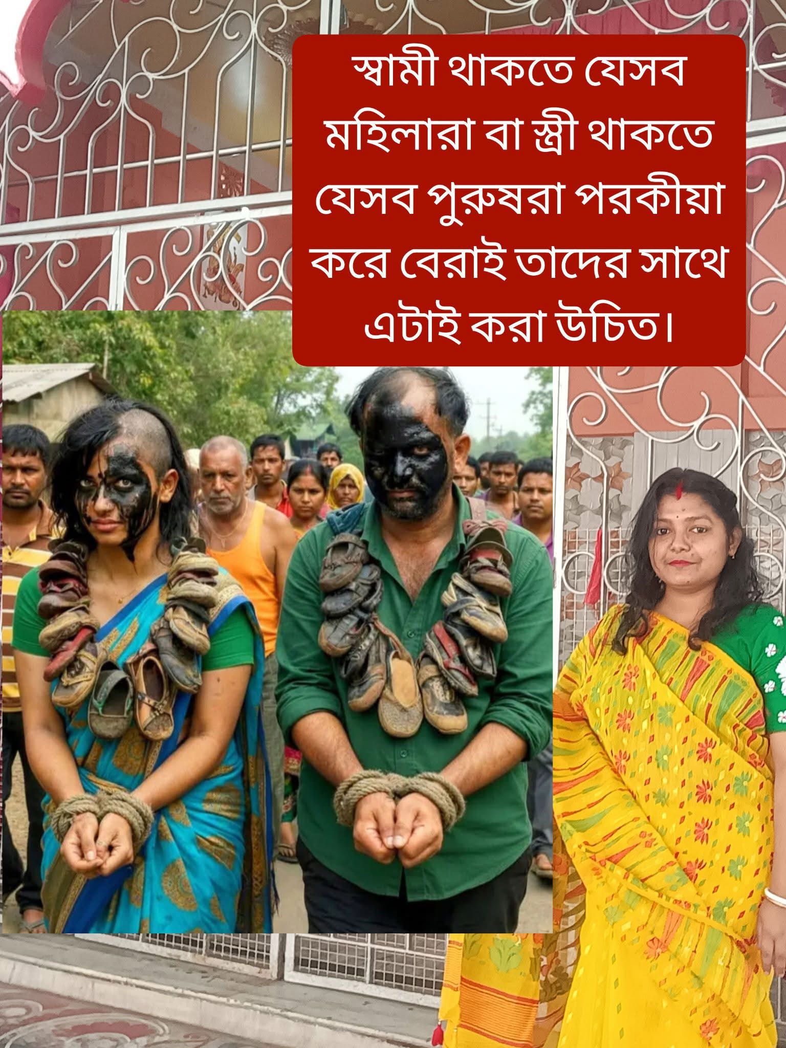 স্বামী থাকতে যেসব মহিলারা বা স্ত্রী থাকতে যেসব পুরুষেরা পরকীয়া করে বেরাই তাদের সাথে এরকম করাটাই উচিত👍