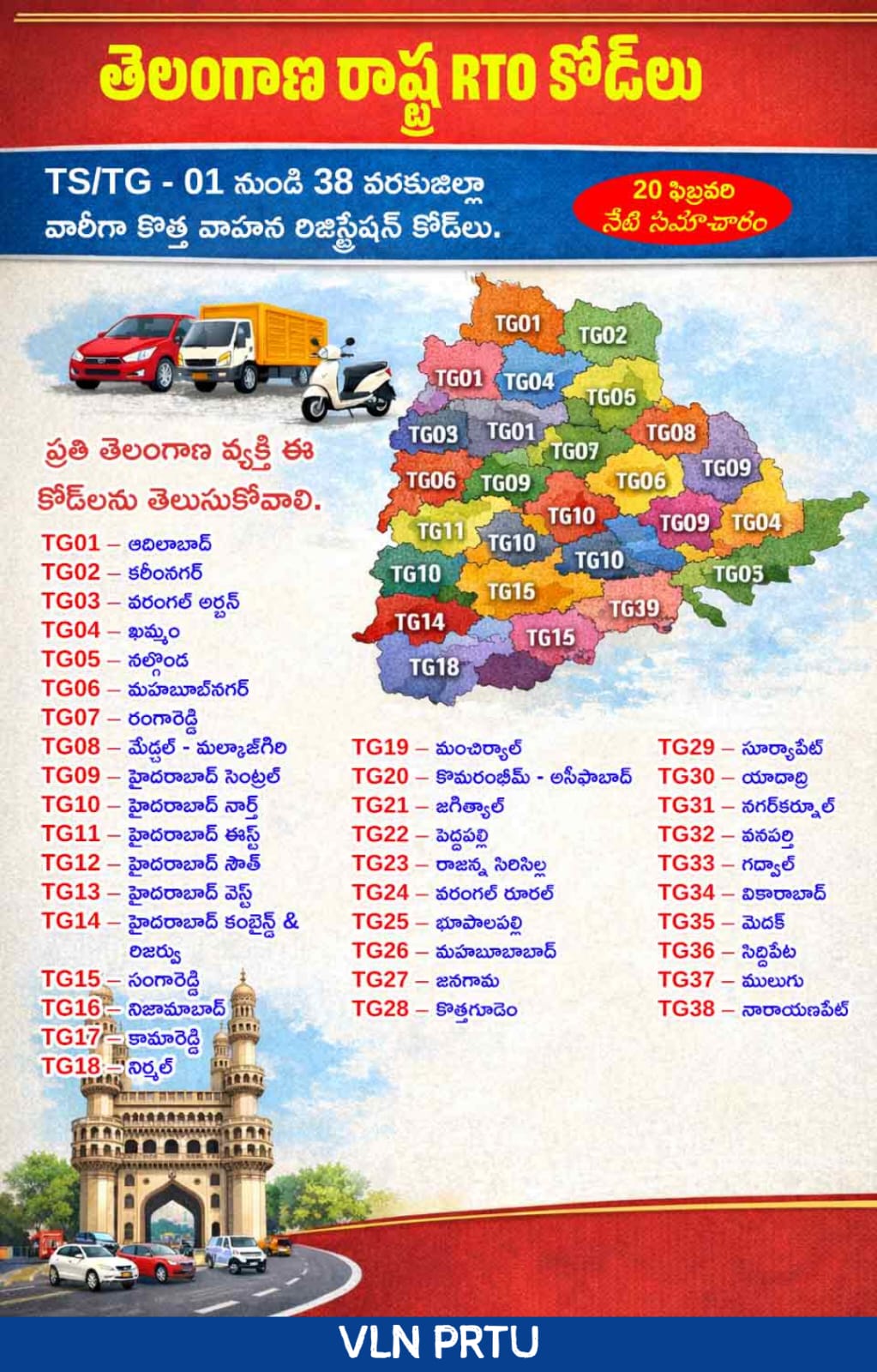 Here is the list of RTO Codes of Telangana State.