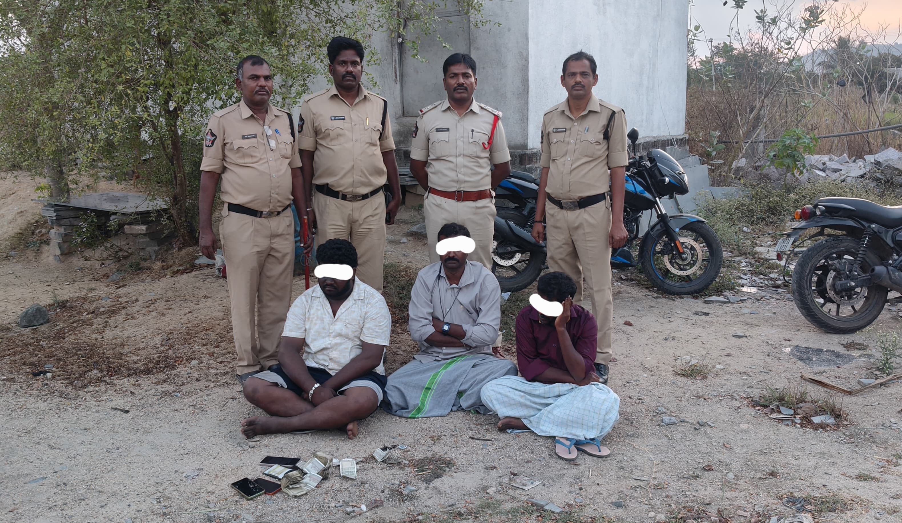 ఈరోజు సాయంత్రం సుమారు 5:30 గంటల సమయంలో పోలీసులు దాడి చేయగా అక్కడ గ్యాంబ్లింగ్ నిర్వహిస్తున్న ముగ్గురు వ్యక్తులను అక్కడికక్కడే పట్టుకున్నారు. పారిపోతున్న మరో ఇద్దరిని కూడా పోలీసులు అదుపులోకి తీసుకున్నారు.