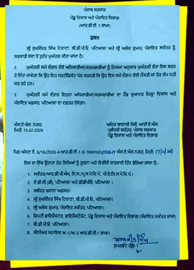 BDPO ਪਟਿਆਲਾ ਸੁਖਵਿੰਦਰ ਸਿੰਘ ਟਿਵਾਣਾ ਤੇ ਪੰਚਾਇਤ ਅਫ਼ਸਰ ਅਸ਼ੋਕ ਕੁਮਾਰ ਕੀਤਾ ਮੁਅੱਤਲ..?