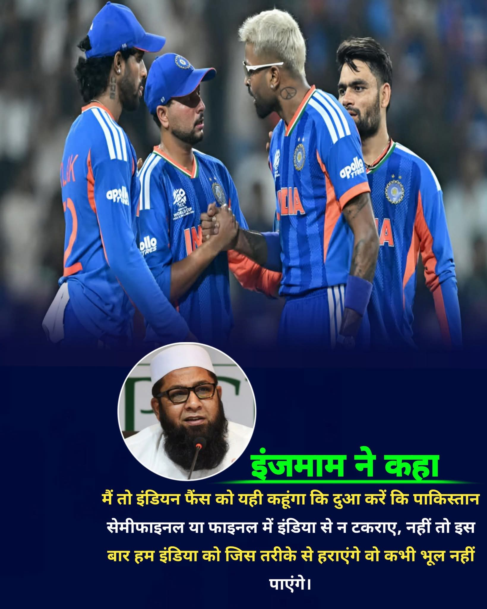 Inzamam-ul-Haq said… “I would just tell the Indian fans to pray that Pakistan does not face India in the semi-final or the final.