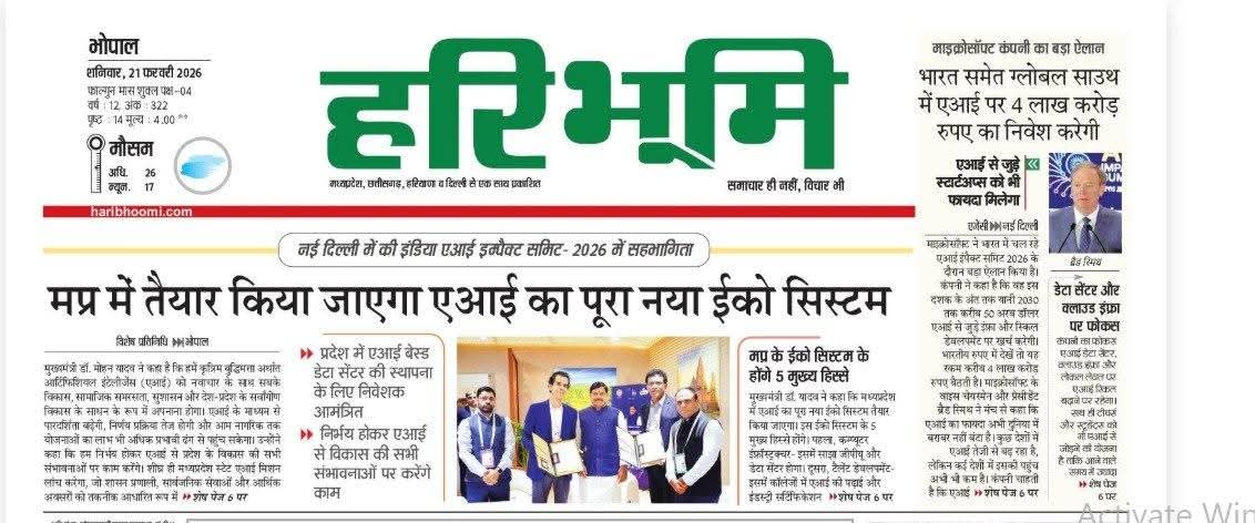 मध्यप्रदेश में तैयार किया जाएगा एआई का पूरा नया ईको सिस्टम Dr Mohan Yadav CM Madhya Pradesh Haribhoomi #MadhyaPradesh #IndiaAIImpactSummit2026