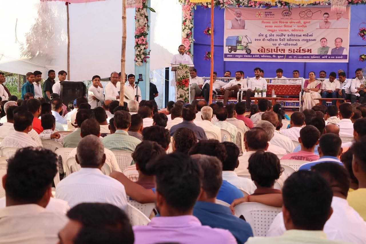 ધારાસભ્ય મુકેશ પટેલ દ્વારા જિલ્લા ગ્રામ વિકાસ એજન્સી – જિલ્લા ગ્રામ વિકાસ એજન્સી – સુરત તથા સ્વચ્છ ભારત મિશન – ગ્રામીણ અંતર્ગત તાલુકા પંચાયત ઓલપાડ દ્વારા “ડોર ટુ ડોર” ગાર્બેજ કલેક્શન માટે મંજૂર કુલ ૨૦૦ ઈ-વ્હીકલમાંથી આજે ઓલપાડ તાલુકાના ૫૯ ઈ-વ્હીકલનું લોકાર્પણ કરવામાં આવ્યું.