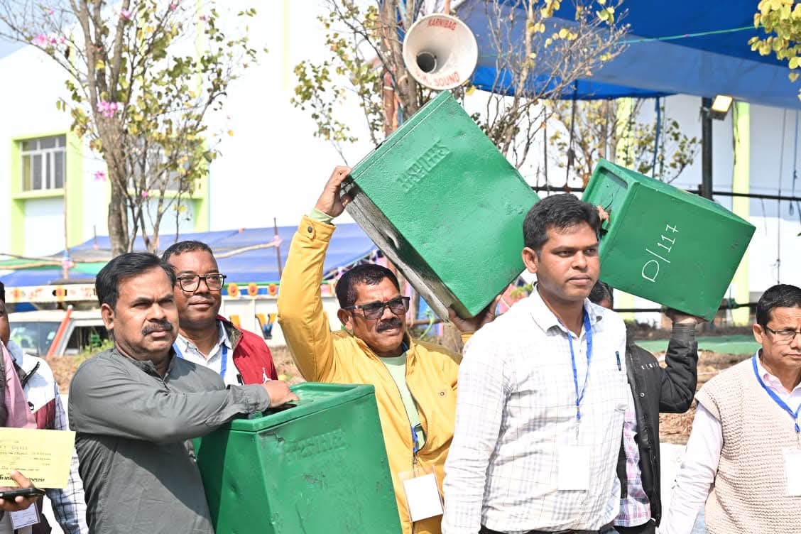 निर्वाचन पदाधिकारियों की देखरेख में मतदान दलों को बैलेट पेपर, मतपेटी सहित अन्य आवश्यक सामग्री उपलब्ध कराई गई। सुरक्षा के कड़े इंतजामों के बीच वाहनों से कर्मियों को उनके निर्धारित बूथों तक भेजा गया।