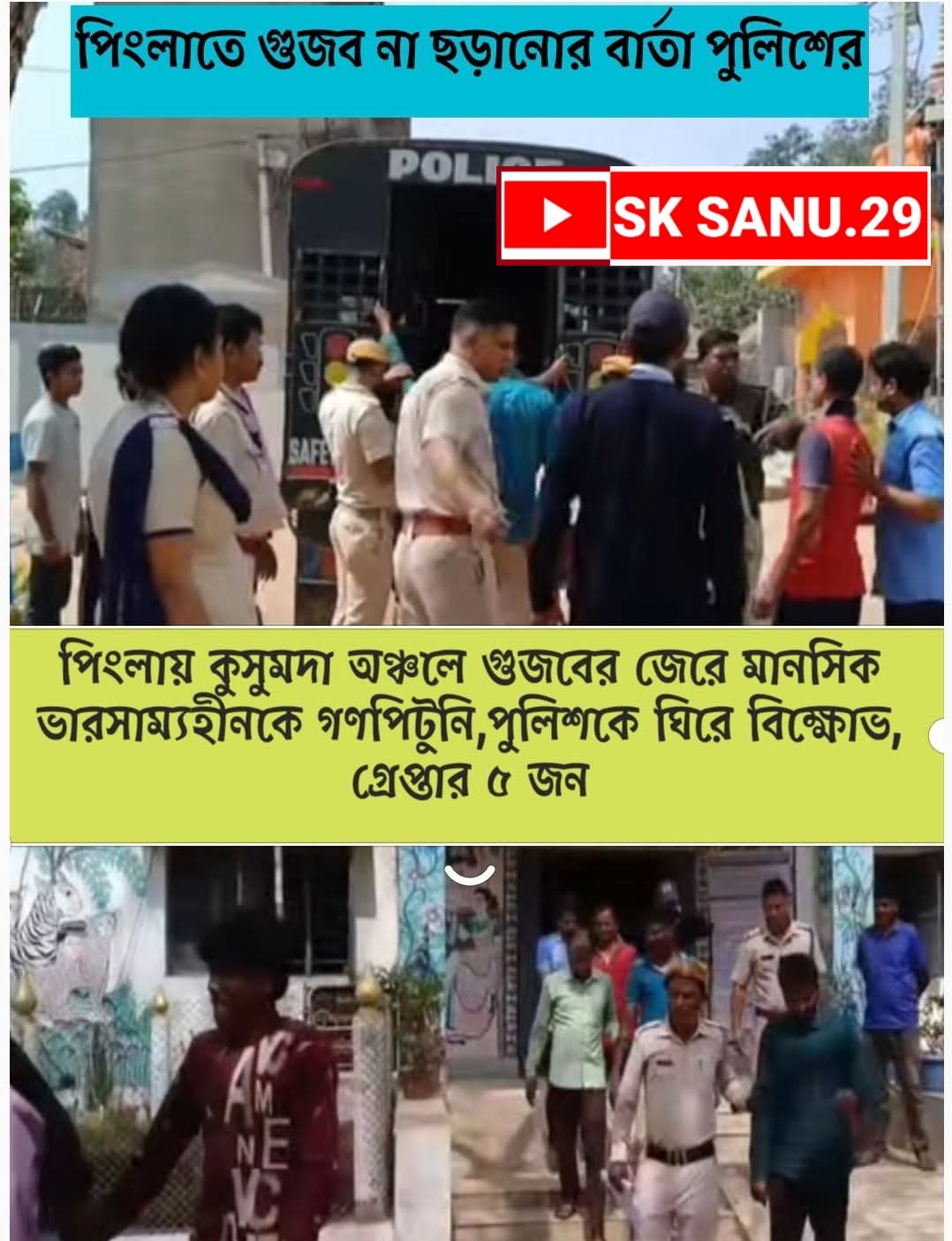 পশিচম মেদিনীপুরে পিংলায় কুসুমদা অঞ্চলে গুজবের জেরে মানসিক ভারসাম্যহীনকে গণপিটুনি,পুলিশকে ঘিরে বিক্ষোভ, গ্রেপ্তার ৫ জন