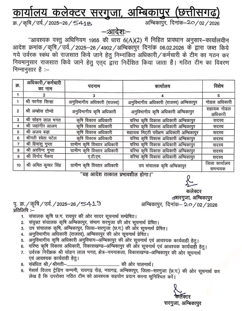 2 करोड़ की यूरिया खाद जब्त: अंबिकापुर में कालाबाजारी पर कलेक्टर की बड़ी कार्रवाई