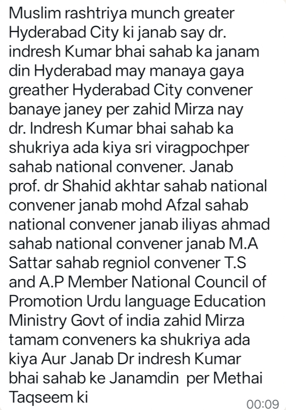 Muslim Rashtriya Manch Greater Hyderabad City Convener Mr Zahid Ali Mirza Birthday Celebrated By Dr Indresh Kumar Sahab, Patron MRM India, National Executive Member RSS Aur Greater Hyderabad City Convener Muslim Rashtriya Manch Banaye Janay Par Zahid Mirza Ke Dosto Ki Janib Se Mubarak Baad Pesh ki Aur Gul Poshi bhi Ki