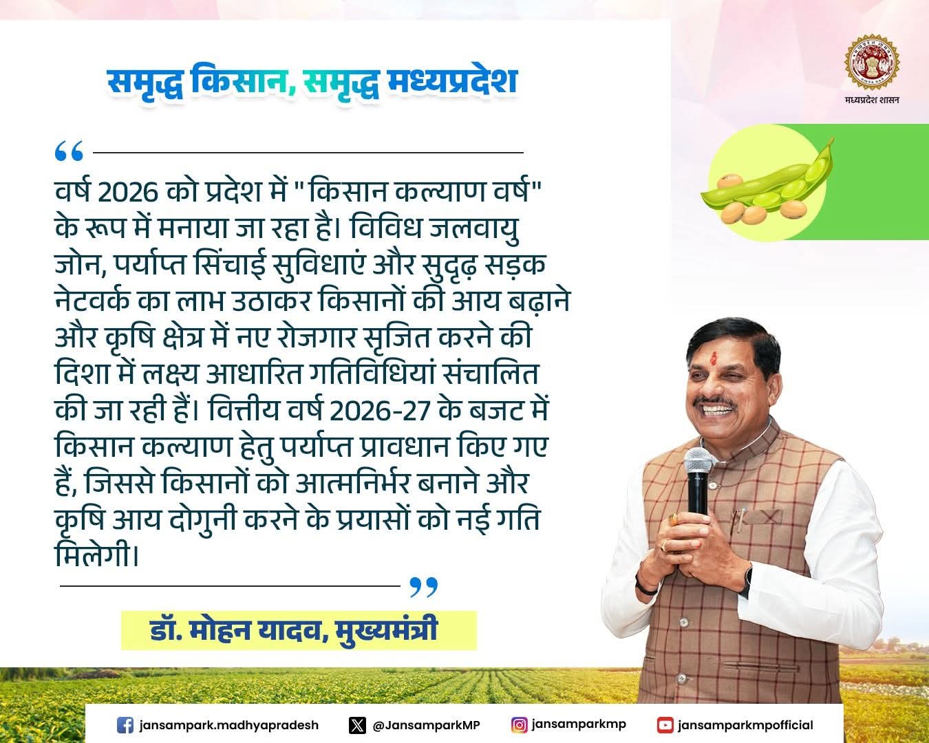 वर्ष 2026 को प्रदेश में "किसान कल्याण वर्ष" के रूप में मनाया जा रहा है।