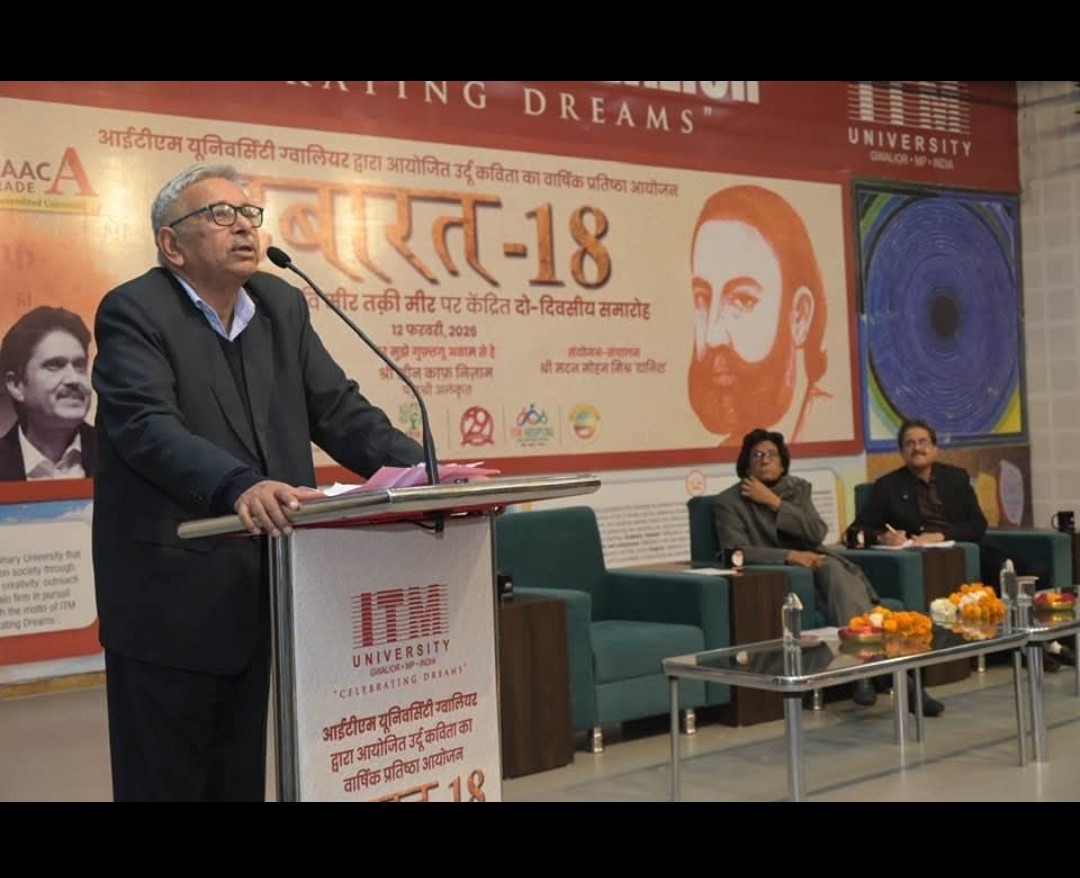 Dr Sheen Kaaf Nizam delivered a lecture on the art of Mir at a national symposium organized by ITM University Gwalior. Mr Madan Mohan Mishra Danish, a poet of new sensibility, merits appreciation for organizing discussions on prominent Urdu poets, such as Ghalib and Mir. He conducted the program with a sense of critical sensibility, culminating in a Mushaira. Notably, the university has conferred Honorary doctorate upon him
