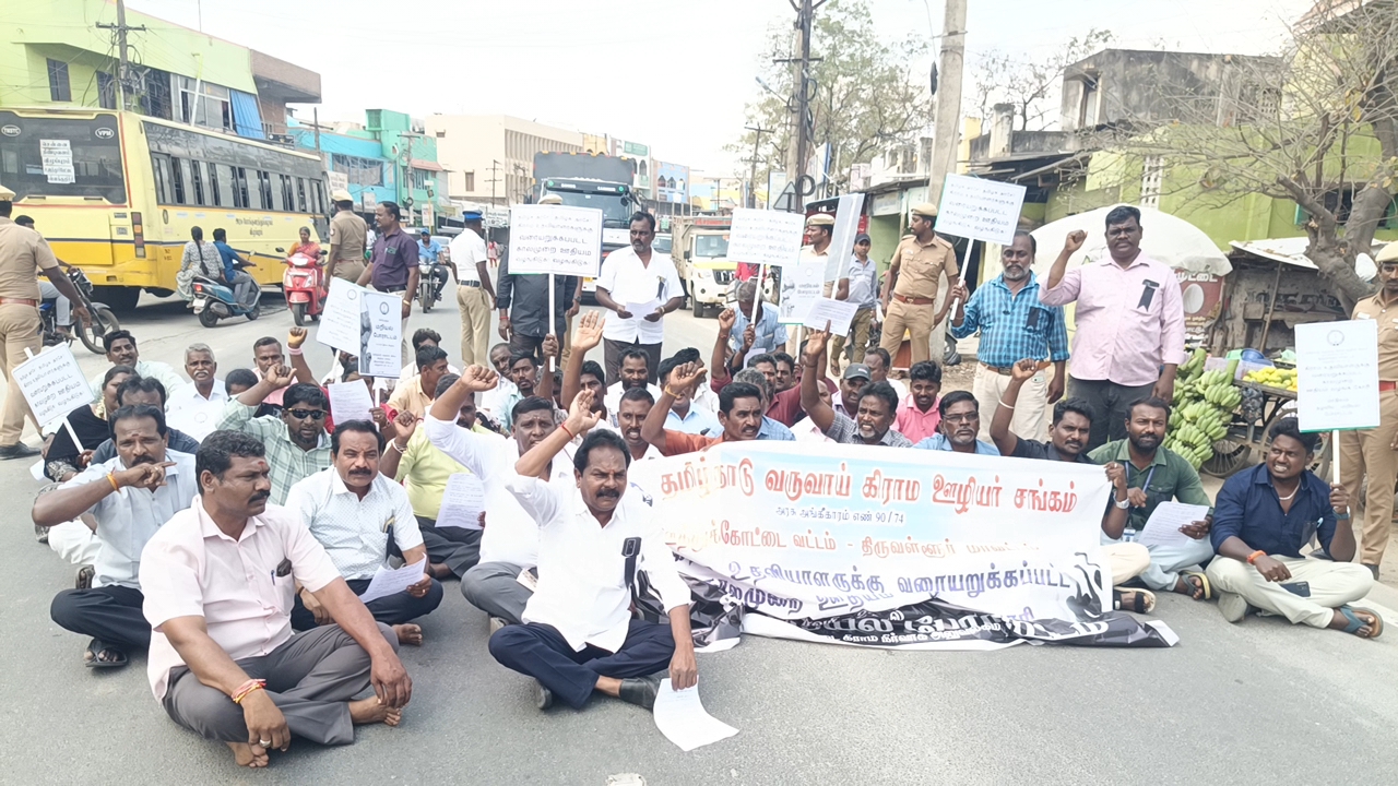 வருவாய் கிராம ஊழியர்கள் சாலை மறியலில் போராட்டம்