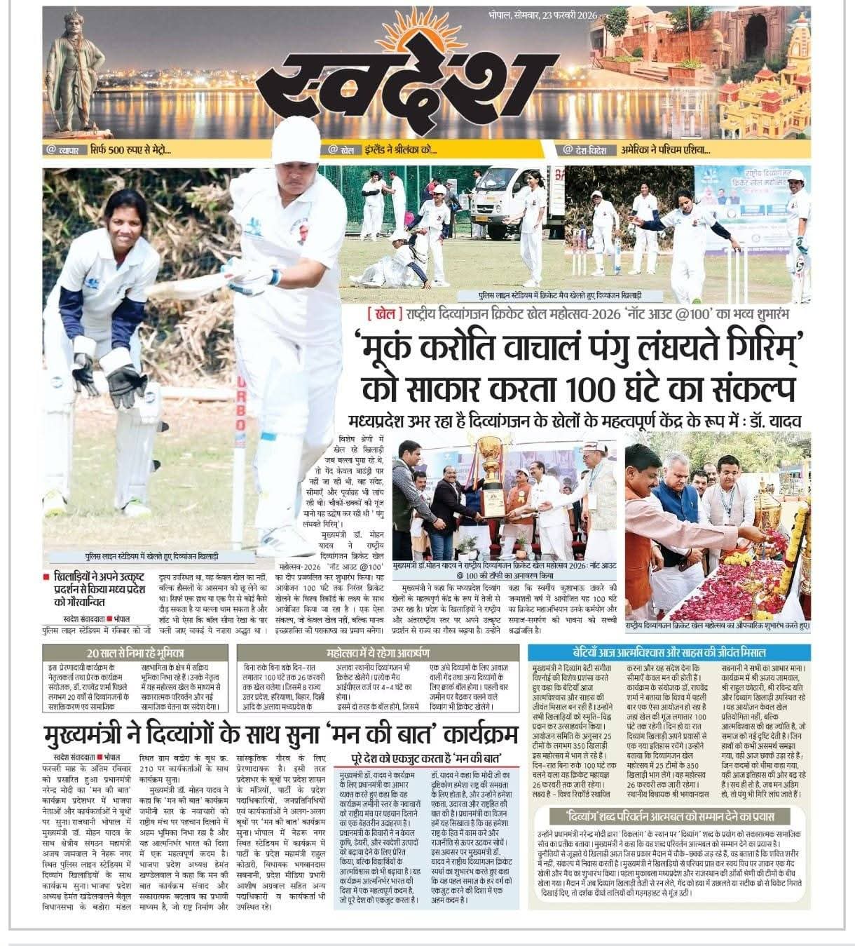 मध्यप्रदेश उभर रहा है दिव्यांगजन के खेलों के महत्वपूर्ण केंद्र के रूप में: मुख्यमंत्री डॉ मोहन यादव