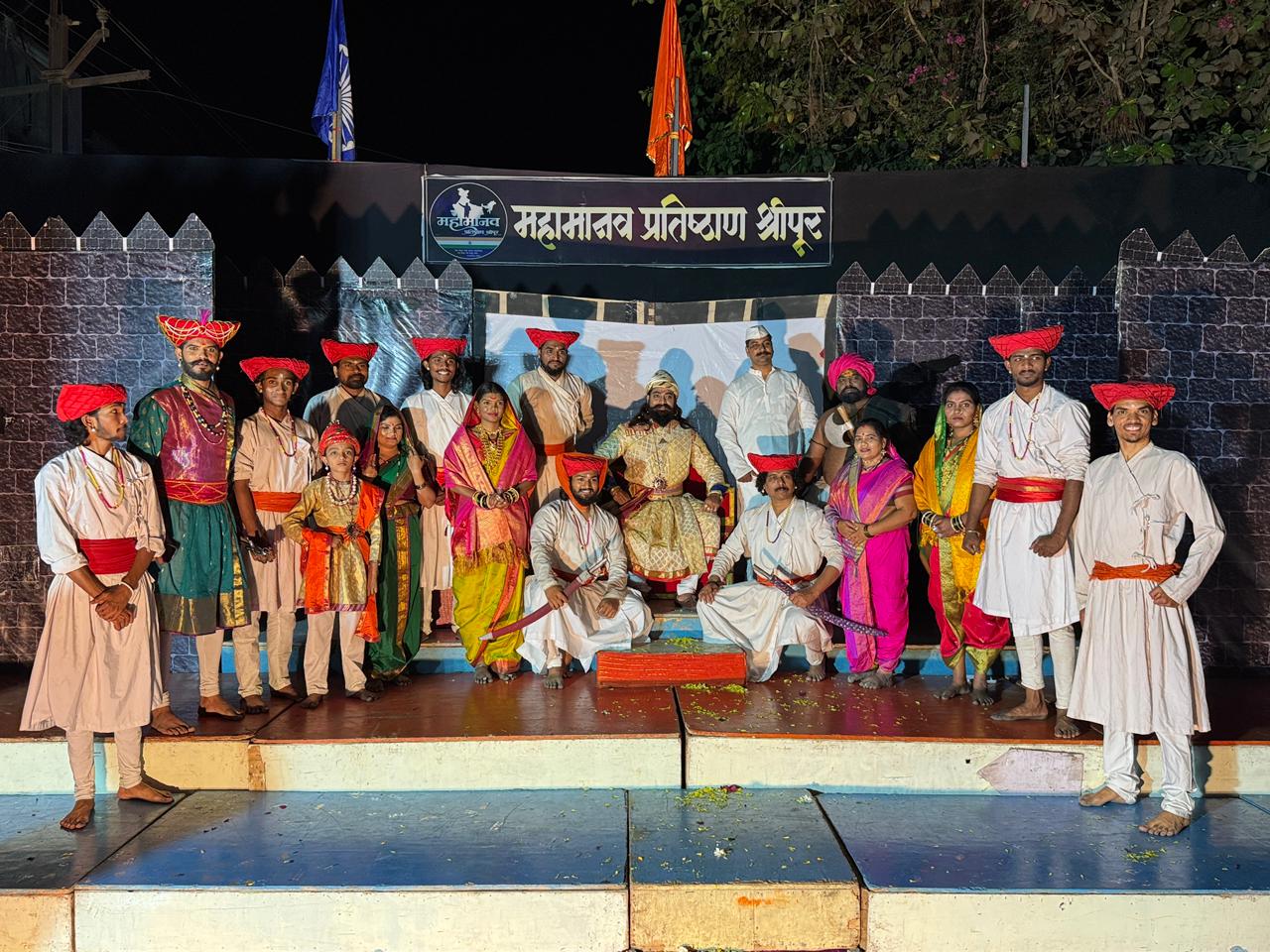 छत्रपती शिवरायांच्या शिव विचारांने स्पर्श करणारे तडाखेबाज महानाट्य जय हो एन्टरटेन्मेंट पुणे निर्मित महानाट्य या अत्यंत सुंदर व देखण्या कार्यक्रमाचे आयोजन करण्यात आले होते गेल्या कित्येक वर्षांपासून श्रीपूरकर रसिकांना अशा ऐतिहासिक सामाजिक विषयांवर गाजलेली कलाकृती पहायला मिळाली त्यामुळे या कार्यक्रमाने श्रीपूरकरांची मने जिंकली नव्हे अडीच तास जागेवर खिळवून ठेवले छत्रपती शिवाजी महाराजांचा रयतेचा विचार स्वराज्याची संकल्पना प्रत्यक्षात त्यांना काय अभिप्रेत होते हे अत्यंत सुंदर सादरीकरण करण्यात आले अक्षरशः हजारो रसिकांच्या डोळ्याचं पारणं फिटलं एवढा शिव ऐतिहासिक सोहळा पहायला मिळाला अचूक टायमिंग उत्तम अभिनय हुबेहूब कलाकृती ऐतिहासिक वातावरण यामुळे *महामानव प्रतिष्ठान चे सर्व पदाधिकारी कार्यकर्ते हे कौतुकास पात्र ठरले*