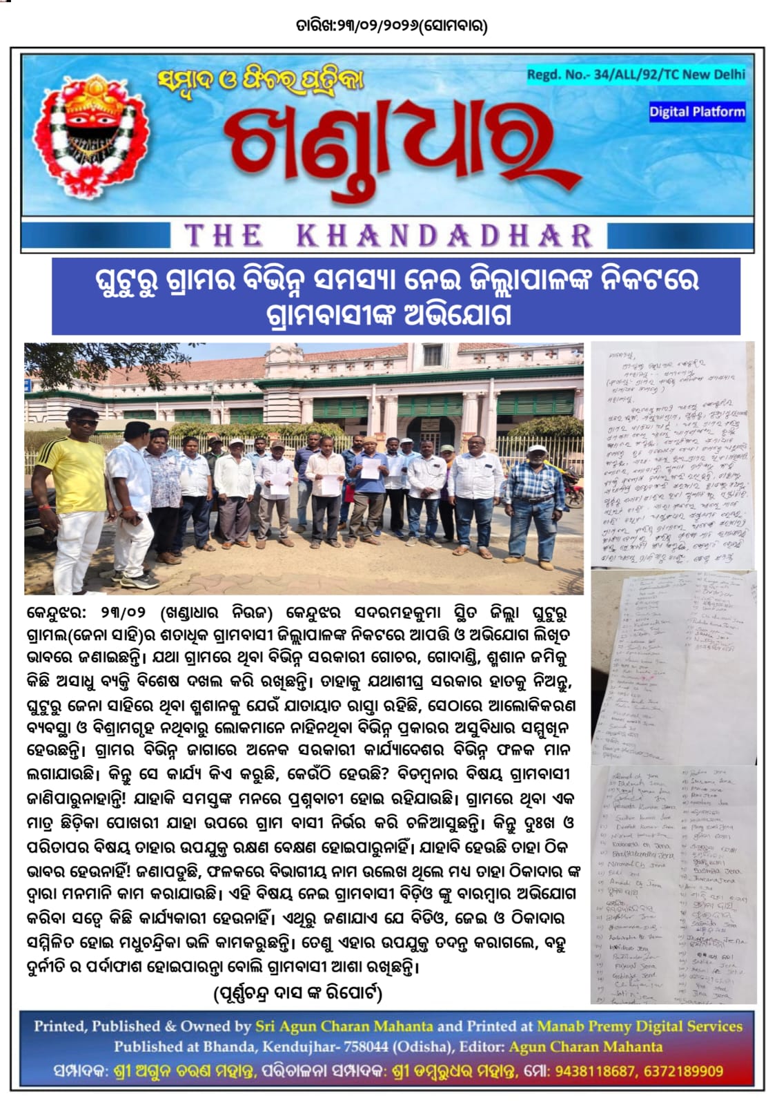 ଘୁଟୁରୁ ଗ୍ରାମର ବିଭିନ୍ନ ସମସ୍ୟା ନେଇ ଜିଲ୍ଲାପାଳଙ୍କ ନିକଟରେ ଗ୍ରାମବାସୀଙ୍କ ଅଭିଯୋଗ।
