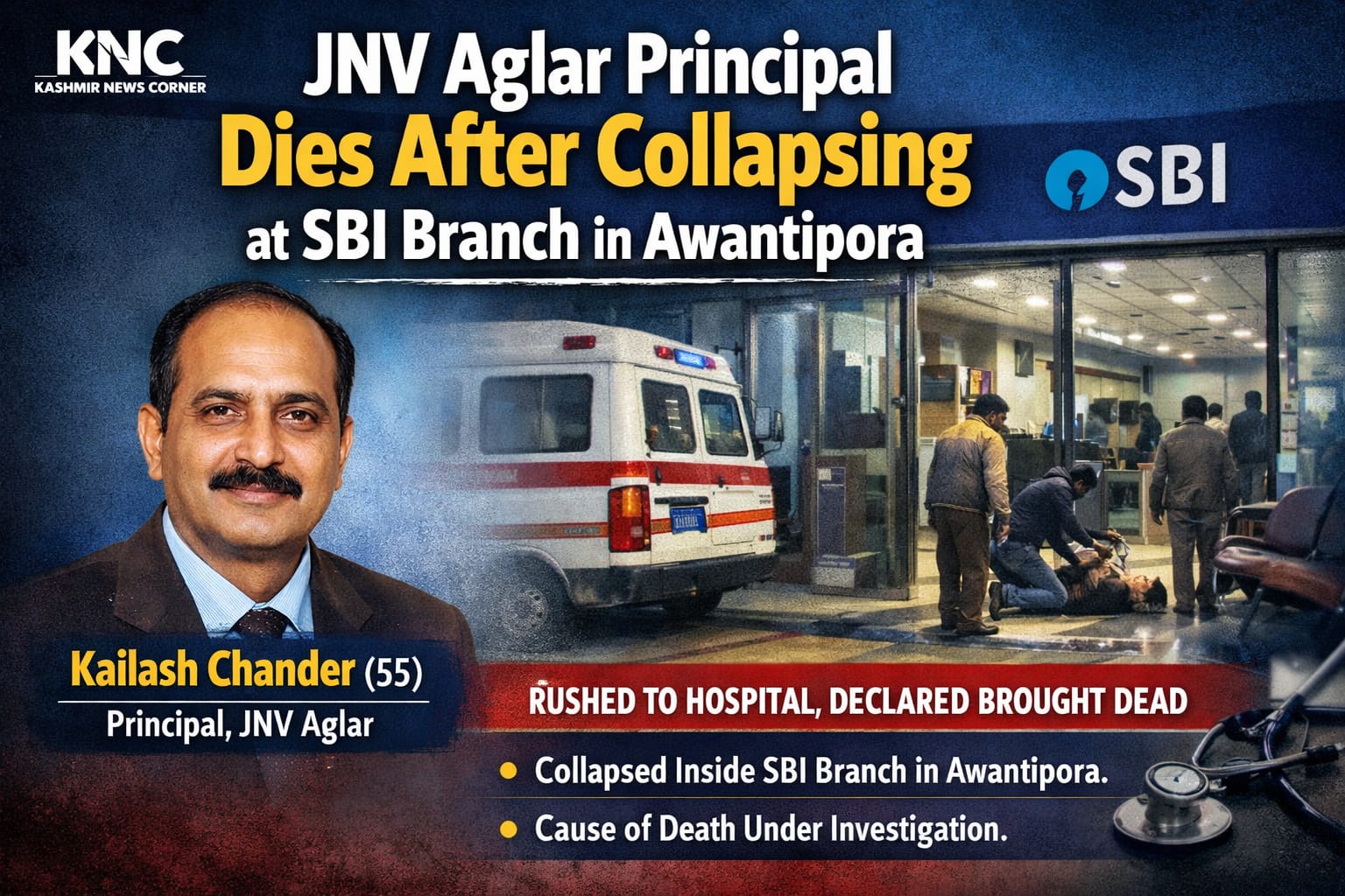 JNV principal died after collapsing a SBI branch in Awantipora kashmir