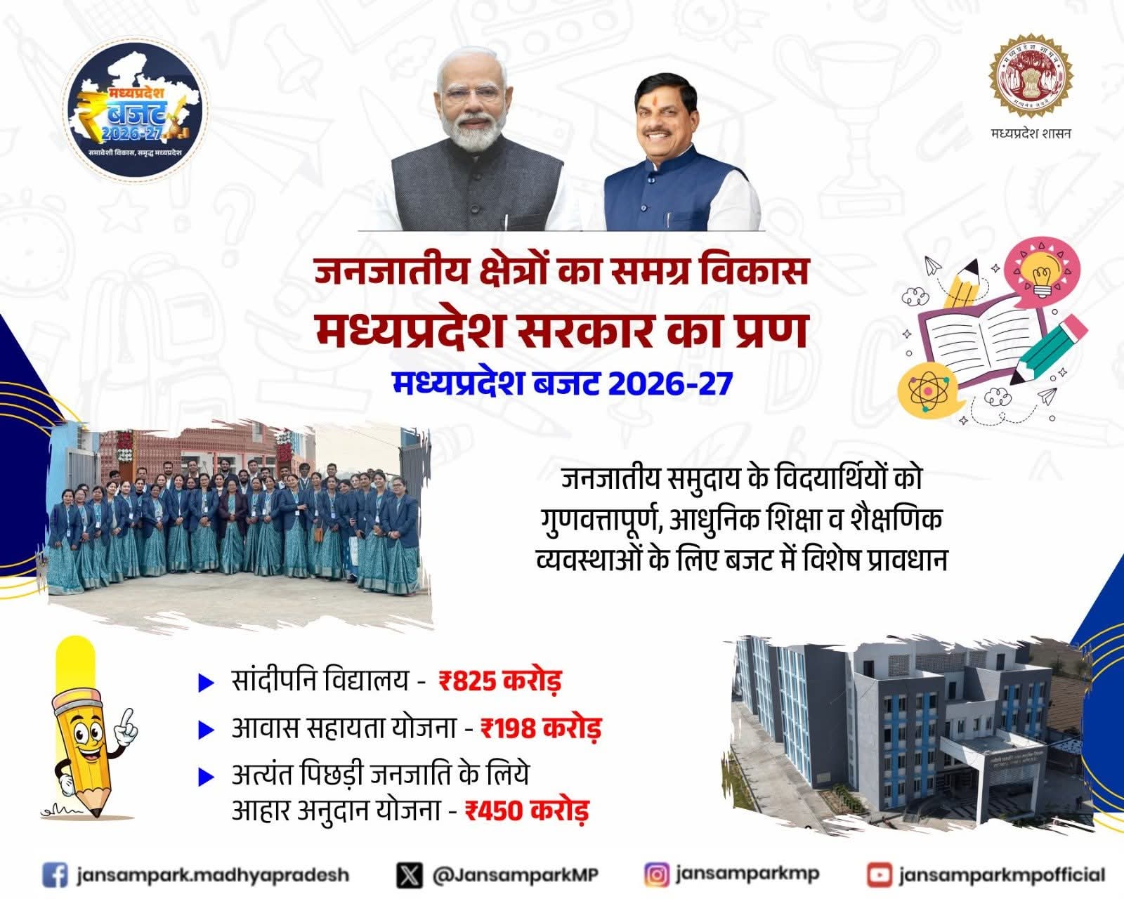 ▶️जनजातीय समुदाय के विदयार्थियों को गुणवत्तापूर्ण, आधुनिक शिक्षा व शैक्षणिक व्यवस्थाओं के लिए बजट में विशेष प्रावधान