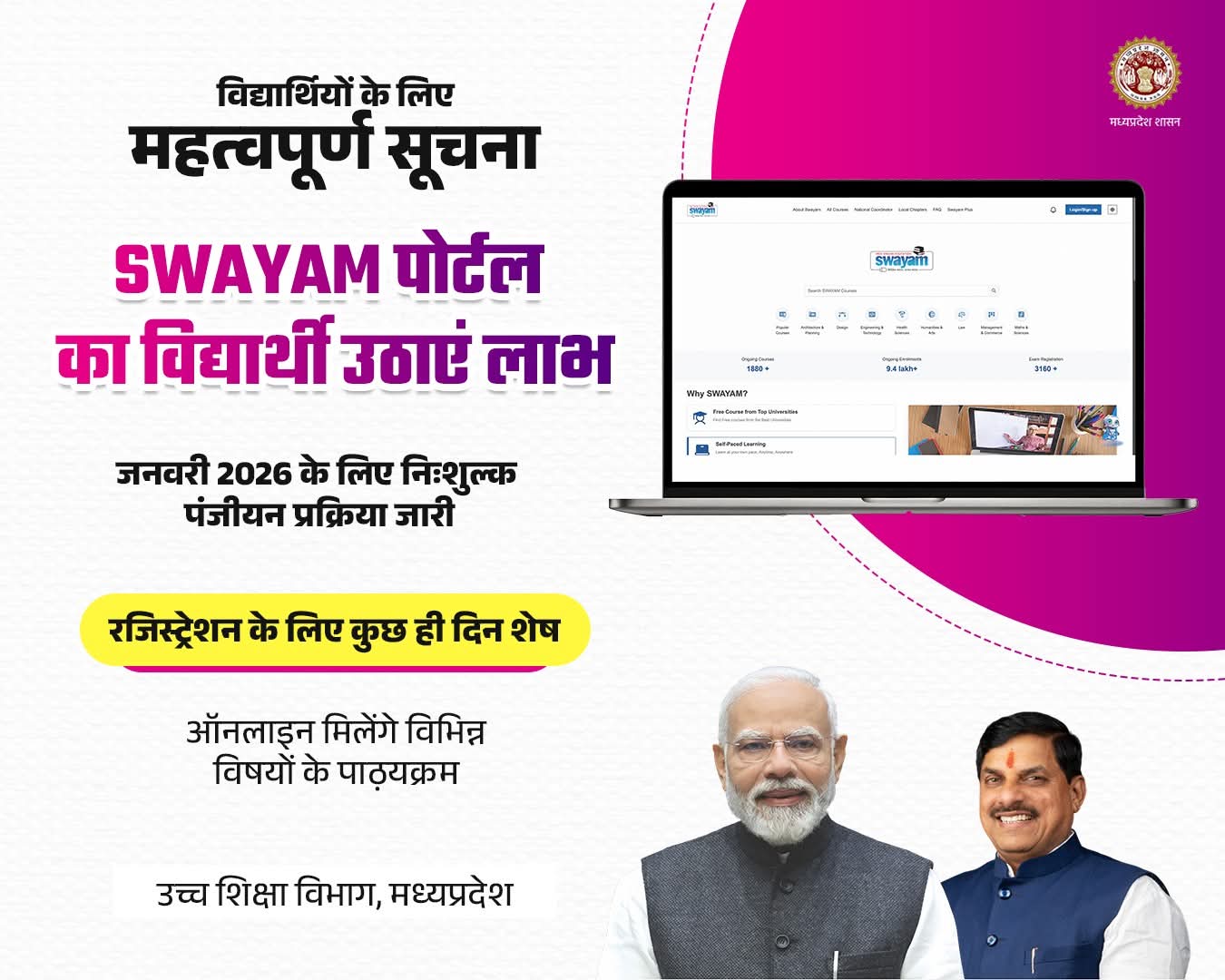 जनवरी 2026 के ल‍िए निःशुल्क पंजीयन प्रक्रिया जारी