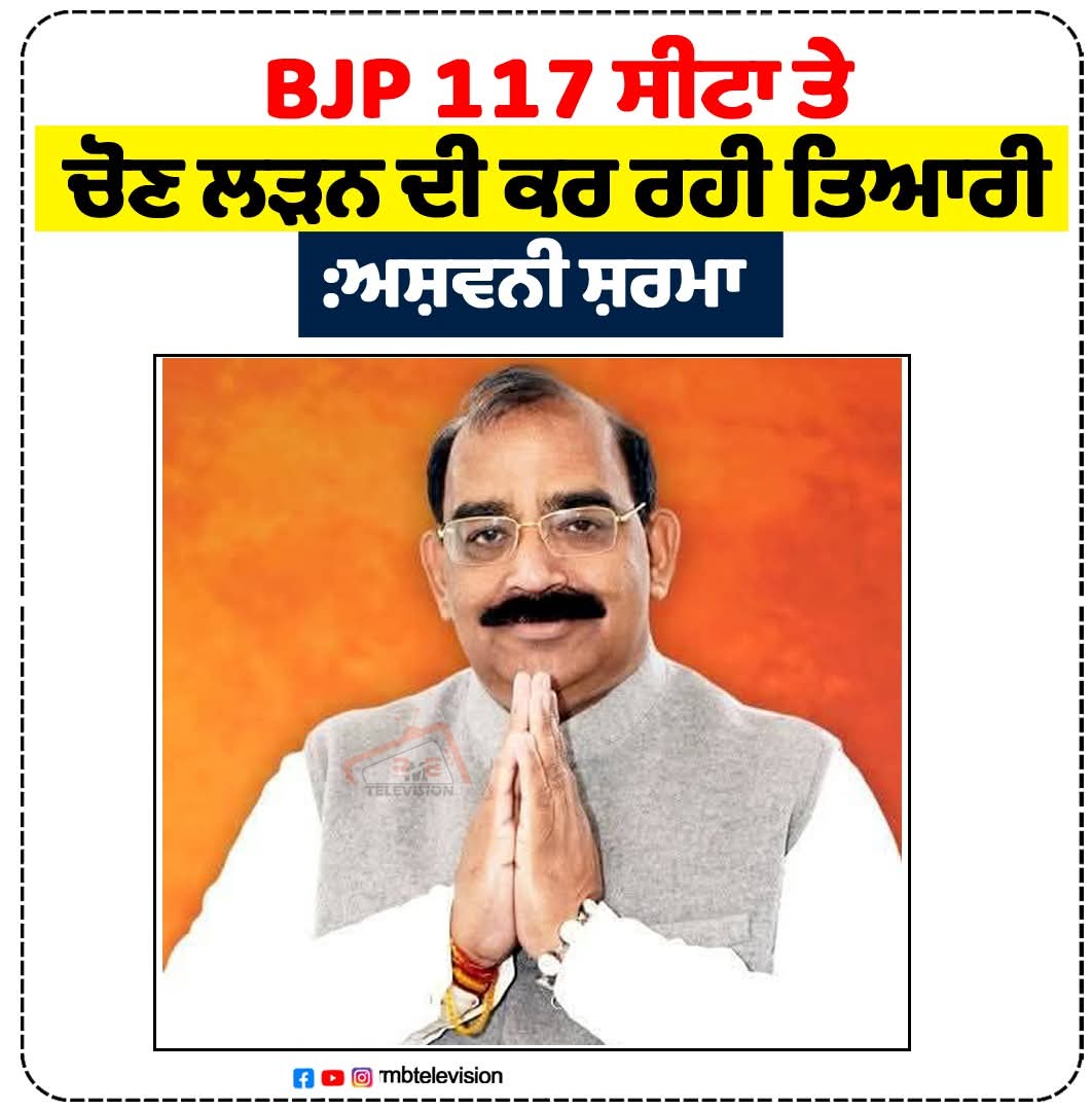 BJP 117 ਸੀਟਾ ਤੇ ਚੋਣ ਲੜਨ ਦੀ ਕਰ ਰਹੀ ਤਿਆਰੀ : ਅਸ਼ਵਨੀ ਸ਼ਰਮਾ
