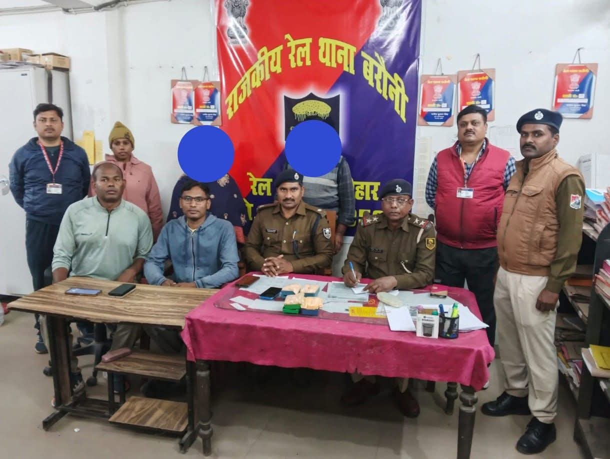 आरपीएफ बरौनी द्वारा एक पुरुष तथा एक महिला को 9 लाख 40 हजार रुपए के प्रतिबंधित नशीली ब्राउन शुगर के साथ पकड़ा पुलिस द्वारा पूछताछ जारी है कहां से आया कैसे आया हर बिंदु पर पुलिस जांच कर रही है और अग्रतार कार्रवाई की जाएगी