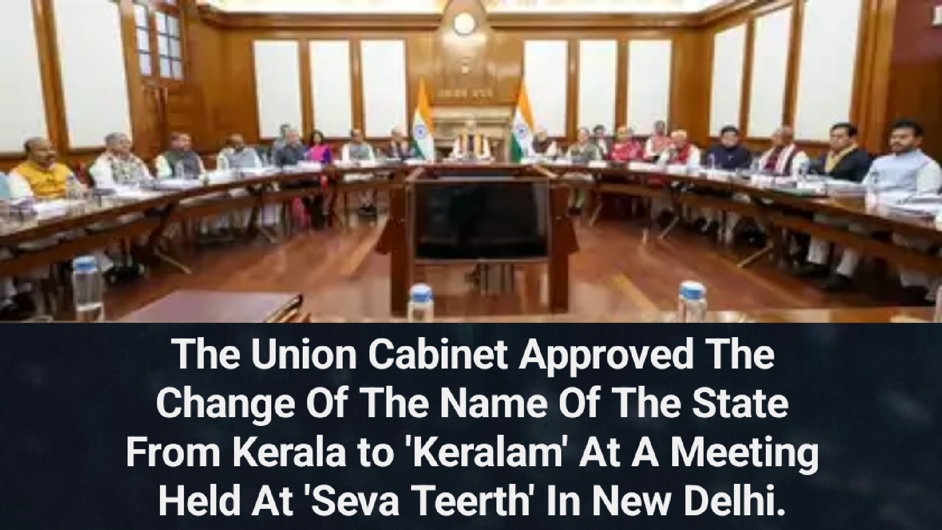 Kerala State Name Change! From Now On 'Keralam'! Union Cabinet Has Approved The Name Change Of this state.