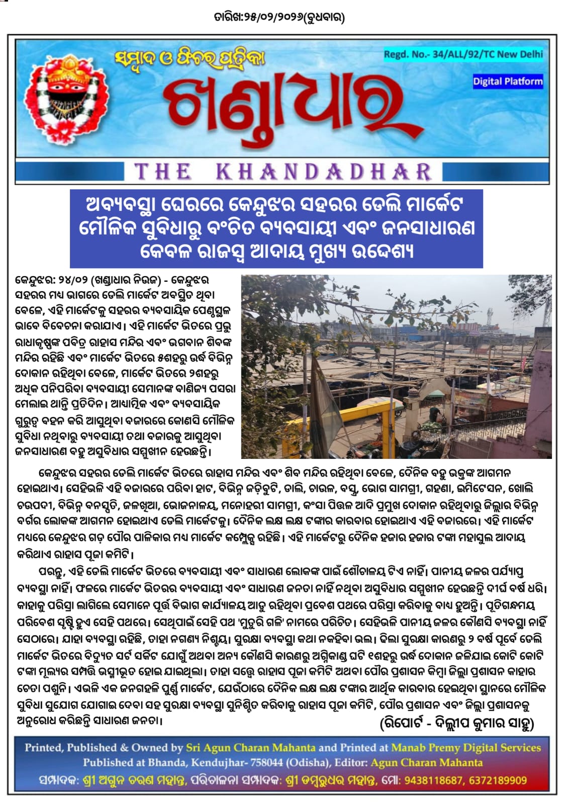 ଖଣ୍ଡାଧାର ନିଉଜ- ଦିଲ୍ଲୀପ କୁମାର ସାହୁଙ୍କ ରିପୋର୍ଟ।