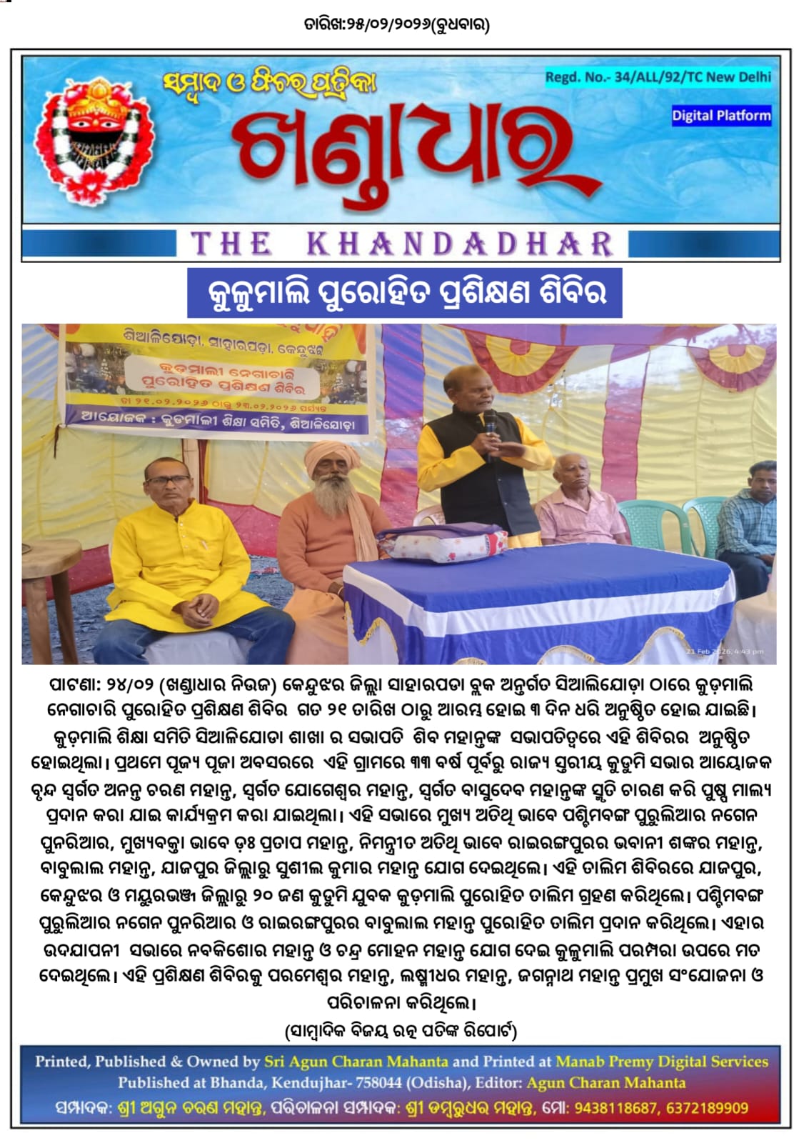 ଖଣ୍ଡାଧାର ନିଉଜ- ସାମ୍ବାଦିକ ବିଜୟ ରତ୍ନ ପତିଙ୍କ ରିପୋର୍ଟ।