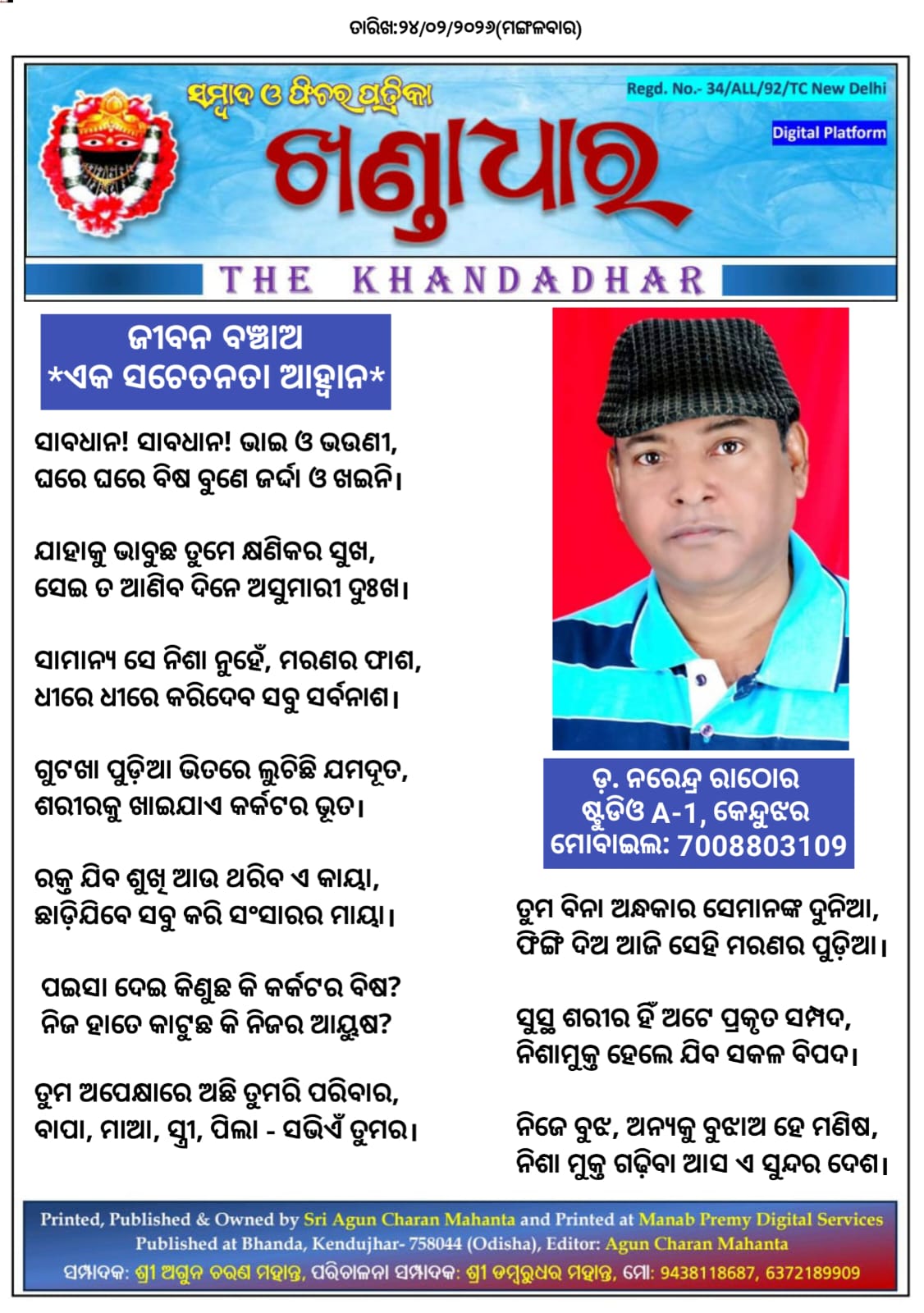 ଜୀବନ ବଞ୍ଚାଅ: ଏକ ସଚେତନତା ଆହ୍ୱାନ- ଡ. ନରେନ୍ଦ୍ର ରାଠୋର ଙ୍କ ଦ୍ଵାରା ରଚିତ କବିତା।