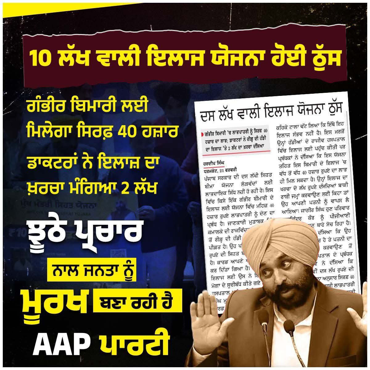 10 ਲੱਖ ਵਾਲੀ ਇਲਾਜ ਯੋਜਨਾ ਹੋਈ ਠੁੱਸ ਝੂਠੇ ਪ੍ਰਚਾਰ ਨਾਲ ਜਨਤਾ ਨੂੰ ਮੂਰਖ ਬਣਾ ਰਹੀ ਹੈ AAP ਪਾਰਟੀ #Punjab #AAPExpose #AAPfailure