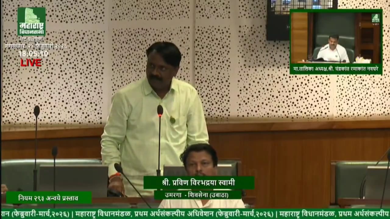 शेतकऱ्यांचे ज्वलंत प्रश्न सभागृहात अत्यंत तळमळीने आणि ठामपणे मांडताना प्रवीण विरभद्रया स्वामी