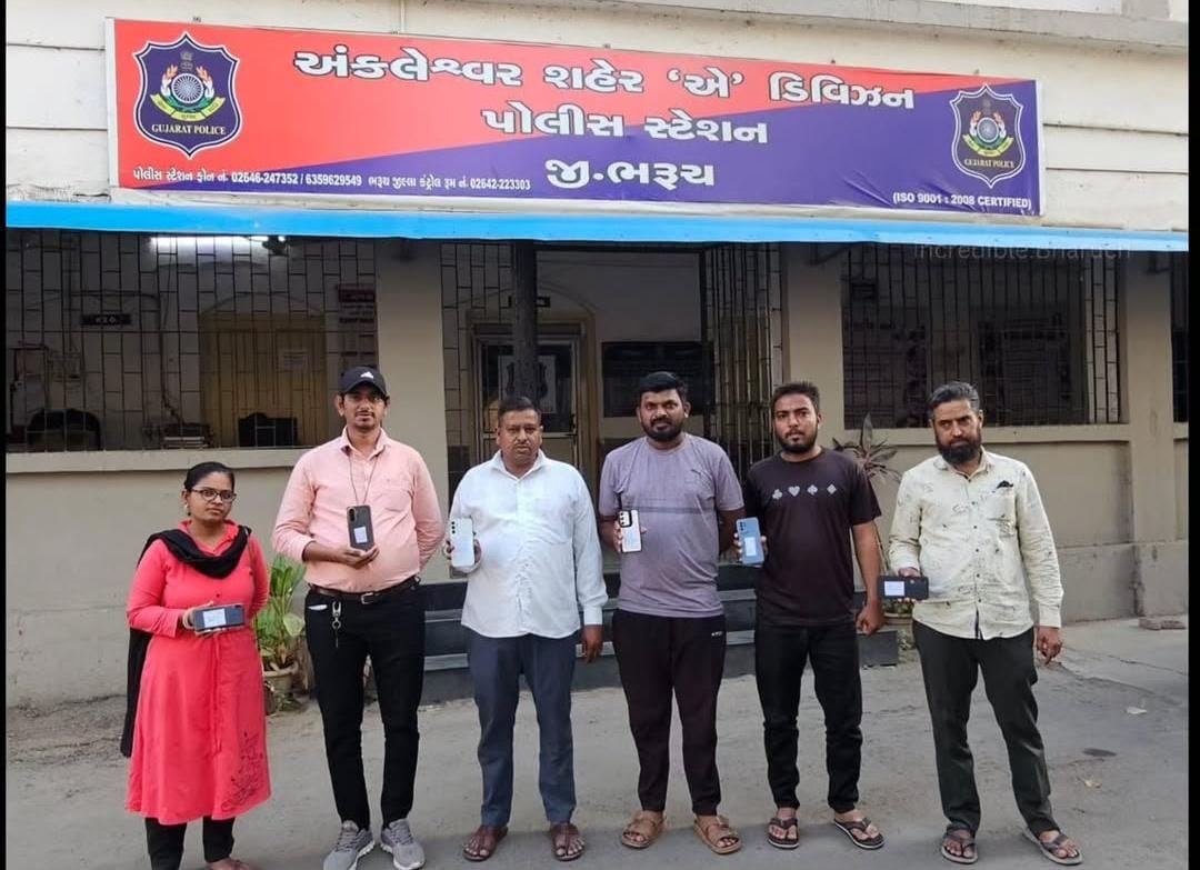 અંકલેશ્વર શહેર "એ ડિવિઝન પોલીસ સ્ટેશન" તેરા તુજકો અર્પણ અંતર્ગ 7 ફોન માલિકોને પરત કર્યા.