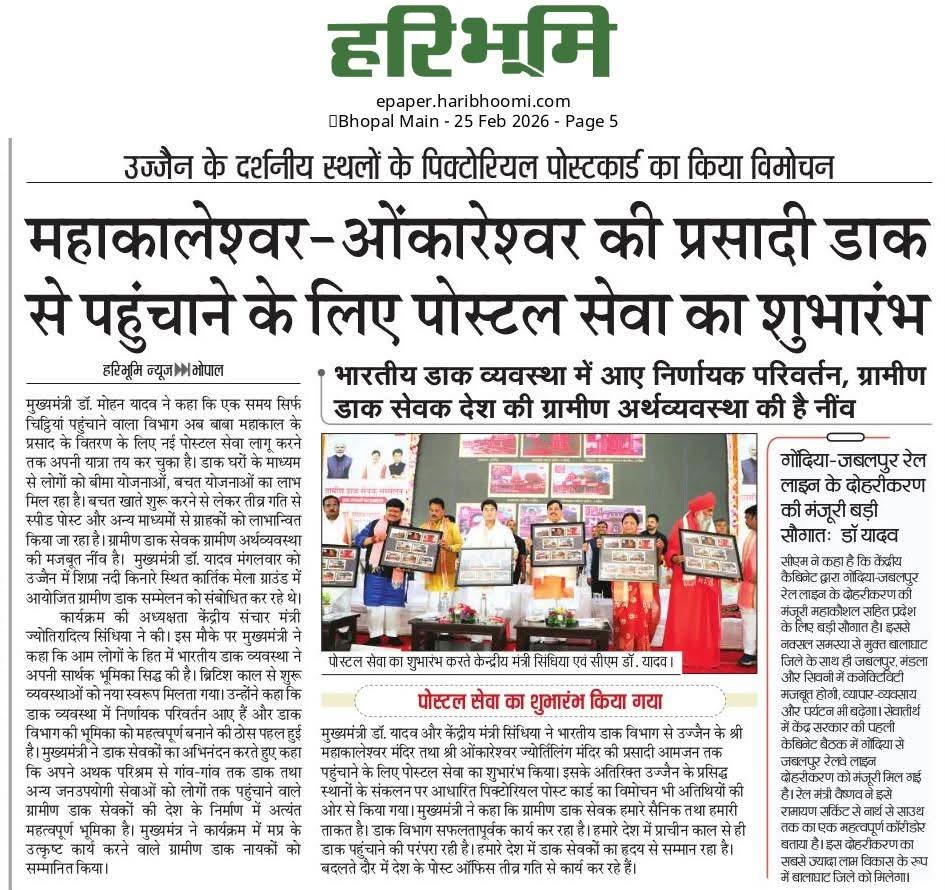 श्री महाकालेश्वर - ओंकारेश्वर की प्रसादी डाक से पहुंचाने के लिए पोस्टल सेवा का हुआ शुभारंभ