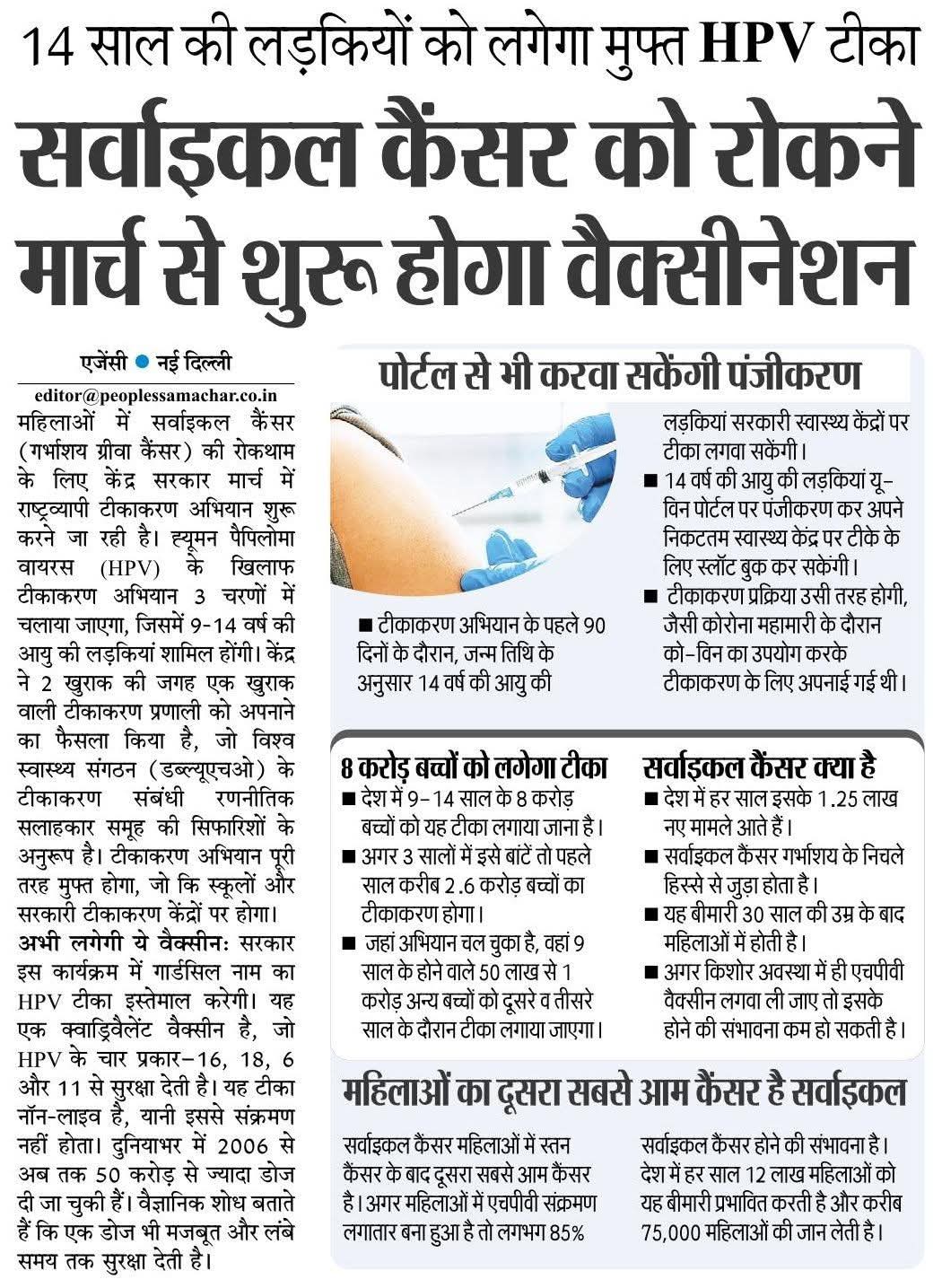 ➡️सर्वाइकल कैंसर को रोकने मार्च से शुरू होगा वैक्सीनेशन